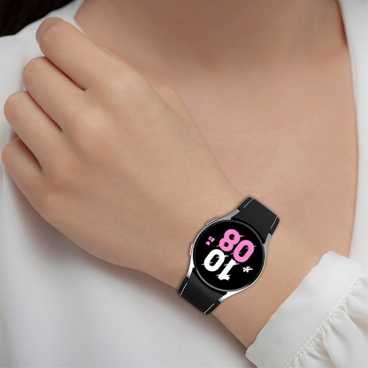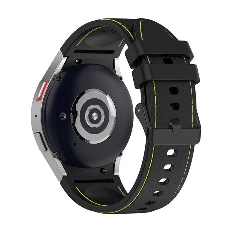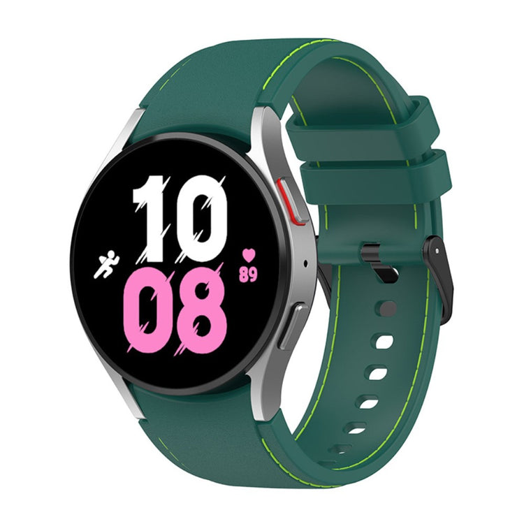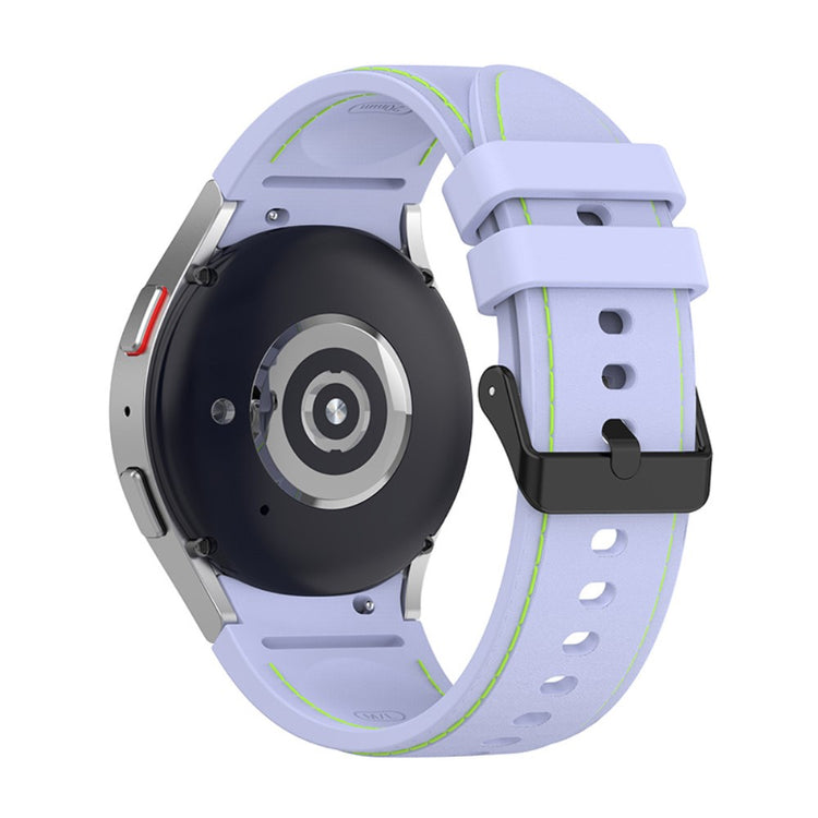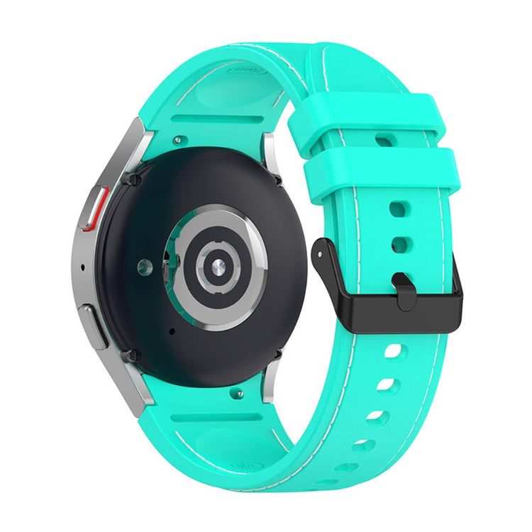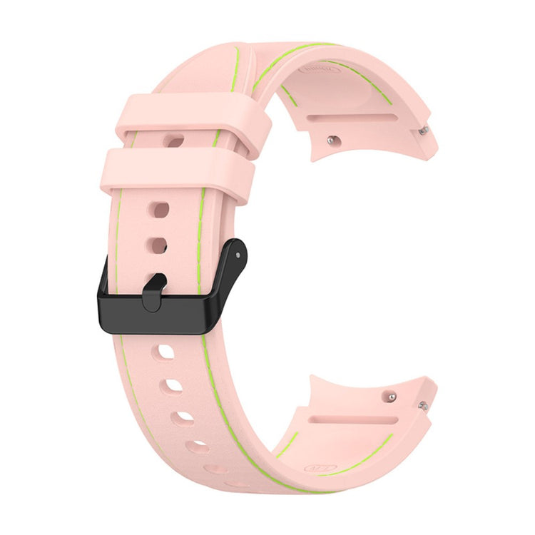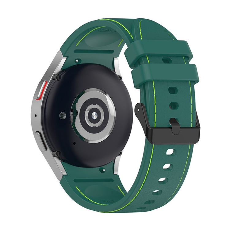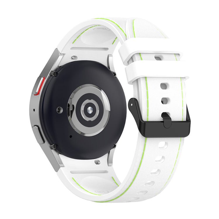 Oppgrader din smartwatch med vårt erstatningsrem i silikon, perfekt laget for Samsung Galaxy Watch6, Watch5 og Watch4. Denne remmen er laget av premium silikon som gir både holdbarhet og komfort, og de neat stitches sikrer en stilren finish. Den klassiske spennen låser remmen sikkert på plass, så du kan være trygg på at klokken sitter godt. Med justeringshull kan du enkelt tilpasse remmen til din håndleddstørrelse, noe som gjør den til en ideell erstatning for din gamle eller ødelagte rem. Velg blant flere farger for å dekke dine ulike behov og stiler. Forvandle klokkens utseende samtidig som du får en komfortabel og slitesterk løsning!