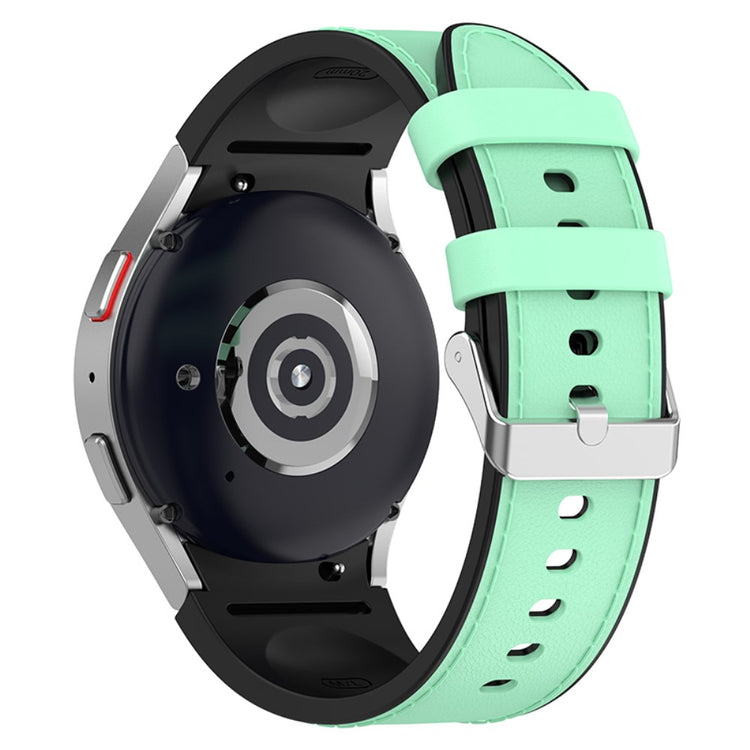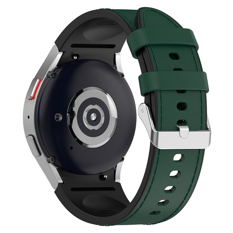 Oppgrader din smartwatch med dette stilige remmen laget for Samsung Galaxy Watch3, Watch4, Watch5 og Watch6-serien! Denne remmen i PU-leder og silikon gir ikke bare et elegant utseende, men er også komfortabel og slitesterk. Med en presis passform som gjør det enkelt å feste og fjerne remmen, kan du bytte ut den gamle remmen på et blunk. Det myke materialet sikrer en skinnevennlig opplevelse, slik at du kan bruke klokken hele dagen uten ubehag. Den unike kombinasjonen av PU-leder og silikon gir et moderne preg samtidig som den er praktisk for enhver anledning, enten du er på kontoret, treningssenteret eller ute med venner. Rimmene er lett å bytte ut, noe som gir deg muligheten til å tilpasse klokken din etter humøret eller antrekket ditt. Med en lengde som passer håndleddsomkrets fra 6,5 til 9,1 tommer, kan denne remmen tilpasses de fleste håndleddsstørrelser. Velg dette tilbehøret for å gi klokken din et fantastisk utseende og en komfortabel bruksopplevelse!