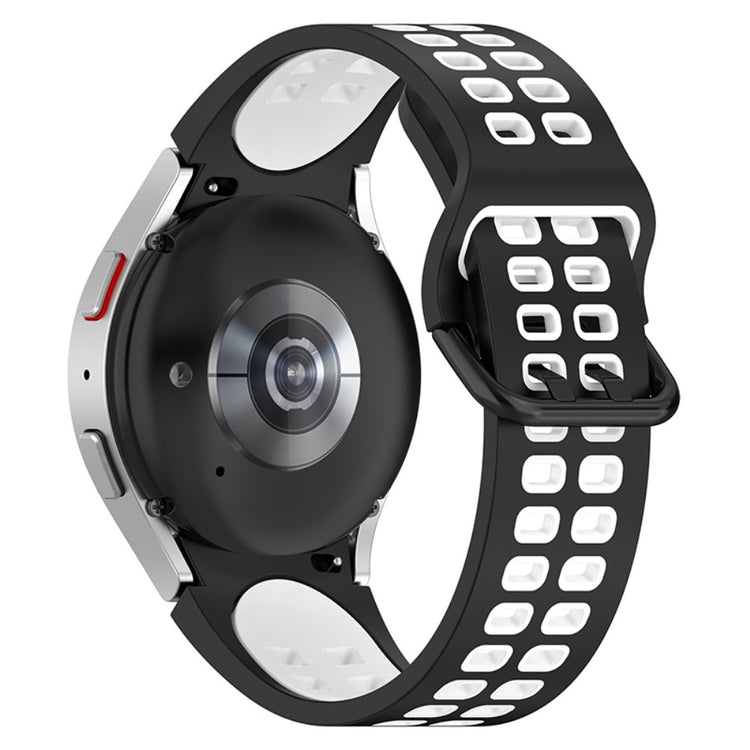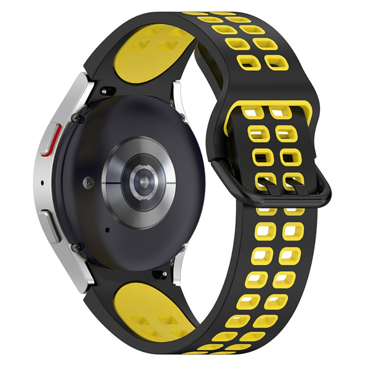 Oppgrader ditt armbånd for Samsung Galaxy Watch med dette stilige silikonbåndet! Laget av høykvalitets silikon gir det en komfortabel passform og er perfekt for daglig bruk. Materialet er hudvennlig og allergifritt, noe som gjør det til et trygt valg for alle. Med et premium spenne er dette båndet både slitesterkt og pålitelig. Den smarte utformingen med flere hull gjør det enkelt å justere størrelsen, slik at du alltid får den perfekte passformen. Dette er en ideell erstatning for et gammelt eller ødelagt bånd, og det passer til både arbeid og fritid. Tilgjengelig i forskjellige farger, er det enkelt å finne din favoritt som passer til enhver stil. Gjør klokkeopplevelsen din enda bedre med dette allsidige og stilige silikonbåndet!