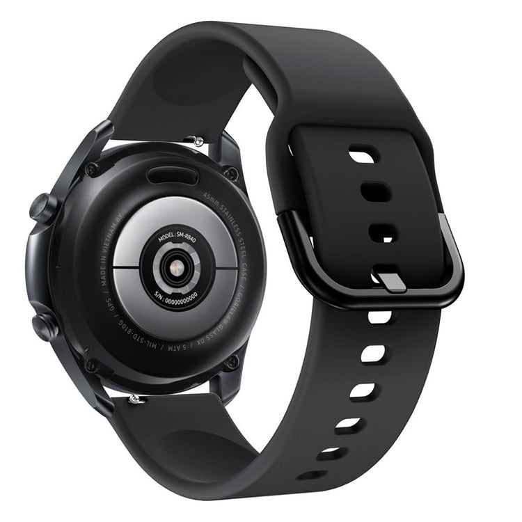 Oppgrader stil og komfort med vår silikonavdrag med metallspenne for Samsung Galaxy Watch3 45mm. Laget av silikonmateriale, er dette armbåndet både mykt og bøylig, noe som gir en behagelig opplevelse hele dagen. Den er holdbar og moderat myk, perfekt for daglig bruk. I tillegg kan størrelsen justeres for å tilpasses din personlige håndleddsstørrelse, noe som gir en optimal passform. Det er en ideell erstatning for ditt gamle eller ødelagte armbånd. Med spesifikasjoner som en kort belte lengde på 85mm og en lang belte lengde på 120mm, samt en maksimal håndleddsomkrets på 210mm, passer dette armbåndet de fleste. Vekt på bare 15g gjør at det er lett å ha på seg, så du knapt merker det. Oppdater din klokke med et nytt, stilrent armbånd som kombinerer funksjonalitet med eleganse!