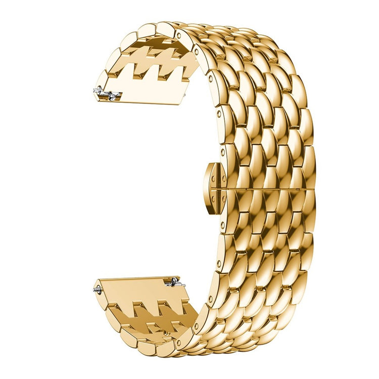Oppgrader stilen din med dette remmen i 316 rustfritt stål, som er både slitesterk og varmeresistent. Den unike sommerfuglspennen sikrer en trygg lukking, noe som forhindrer at klokken faller av. Denne kompatible remmen passer til en rekke smartklokker, inkludert Huawei Watch GT, Samsung Galaxy Watch 46mm og mange flere.