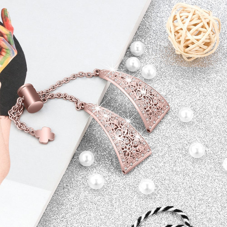Oppgrader smartklokken din med denne elegante og komfortable klokkereimen i premium sinklegering. Med et utsmykket blomstermønster og glitrende rhinestones, vil denne reimen komplementere ethvert smykke.