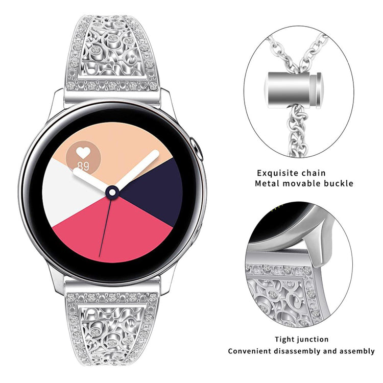Få et elegant løft til smartwatchen din med vårt 22mm blomstret bling armbånd laget av premium sinklegering. Det komfortable og stilige designet med rhinestones passer perfekt til enhver anledning, enten på jobb eller i fritiden. Den justerbare kjedespenne gjør det enkelt å tilpasse armbåndet uten verktøy, og det er en utmerket erstatning for et ødelagt armbånd.