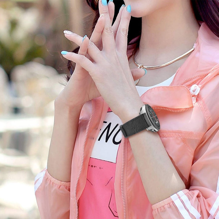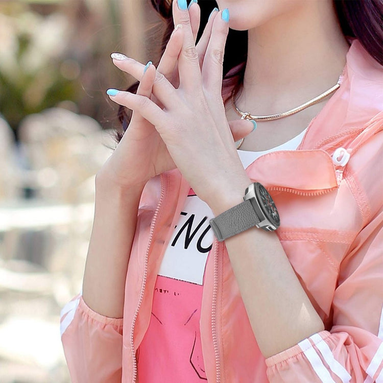 Denne høy-kvalitets reimen i ekte lær med krokodilletekstur gir et klassisk og elegant utseende til din smartklokke. Moderat mykhet sørger for en behagelig brukeropplevelse.