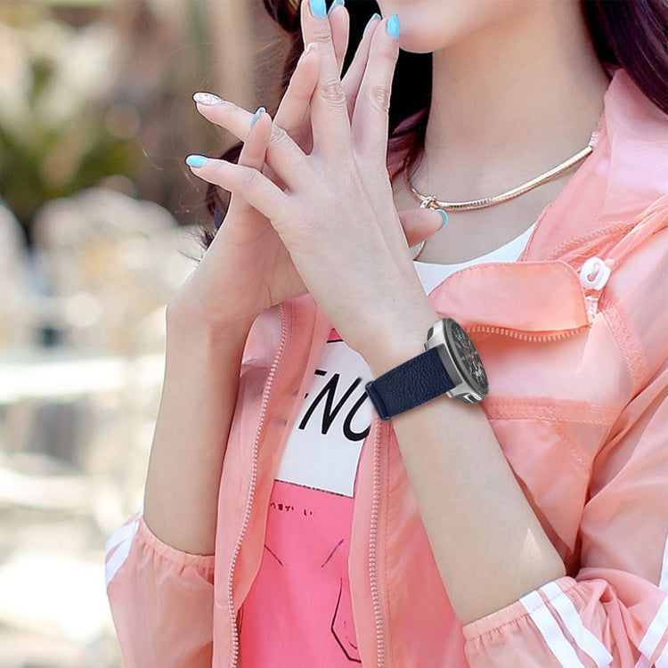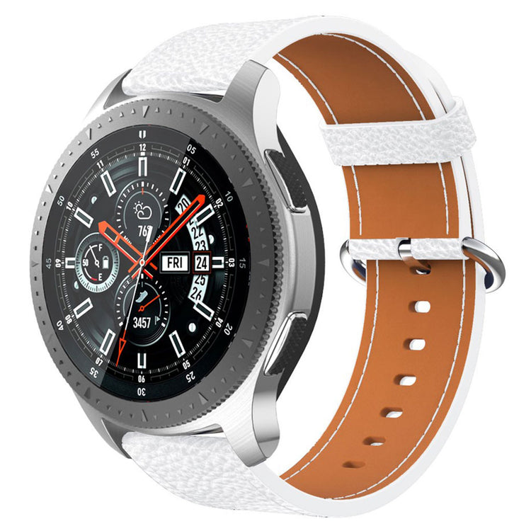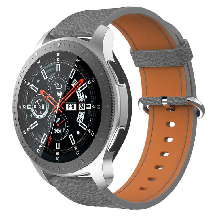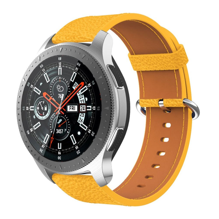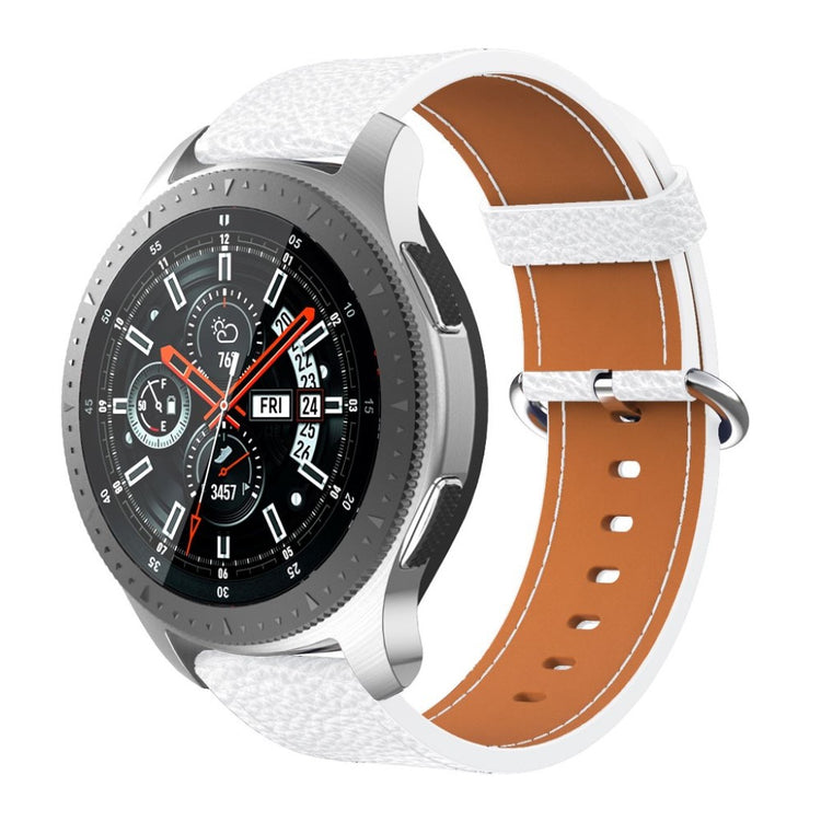 Velg vårt 22mm klassiske metallspenne ekte lær klokkerem for din smartklokke, og opplev en ny standard for stil og komfort. Dette produktet er laget av høy kvalitet ekte lær med krokodillemønster, som gir et elegant utseende og en moderat mykhet som gjør det behagelig å ha på seg hele dagen. Den klassiske metallspennen gjør det enkelt å ta på og av remmen, mens hullene på remmen gir deg muligheten til å justere passformen etter din egen håndleddsomkrets. Dette er en ideell erstatning for en gammel eller ødelagt klokkerem, og med en vekt på kun 15g vil du knapt merke at den er der. Kompatibel med en rekke populære smartklokker, som Samsung Gear S3 Classic, Galaxy Watch 46mm, og mange flere, er dette tilbehøret perfekt for å gi nytt liv til din favorittklokke.