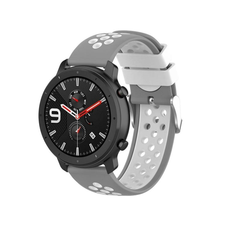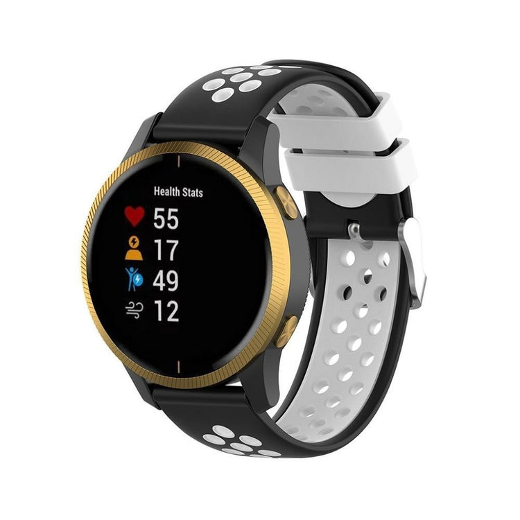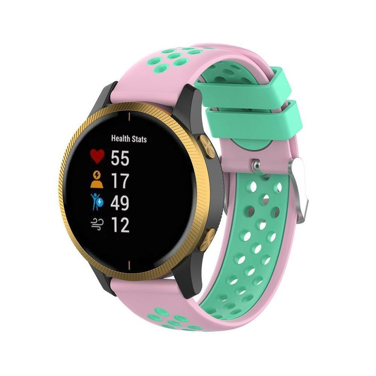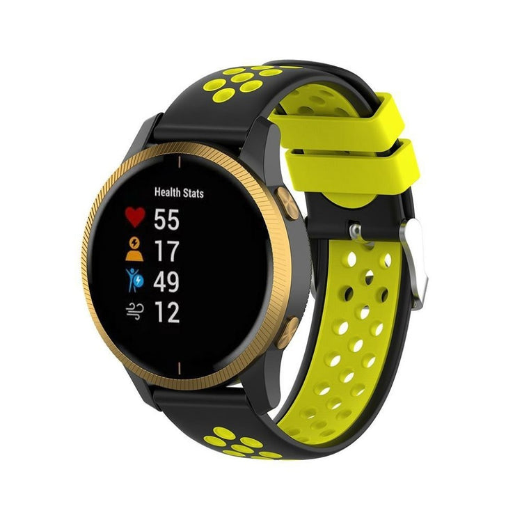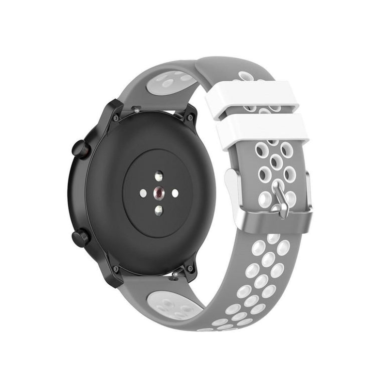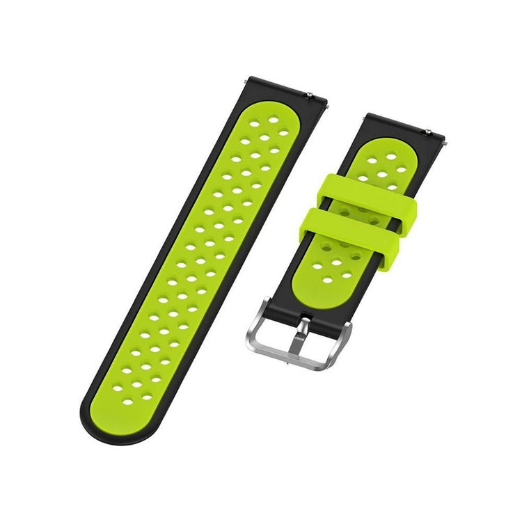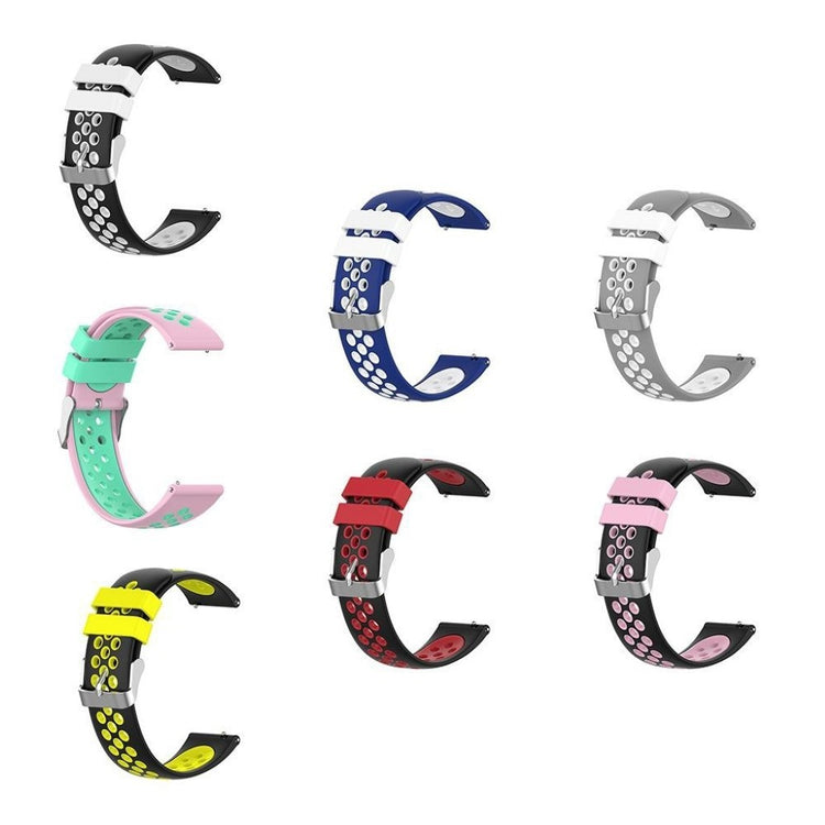 22mm bi-farget silikonrem laget av miljøvennlig silikon, som er slitesterk og motstandsdyktig mot slitasje. Den har et flerhullsmønster for enkel justering av størrelse og gir et friskt utseende på håndleddet. Denne remmen er en ideell erstatning for din gamle eller ødelagte rem og er kompatibel med flere populære klokker.