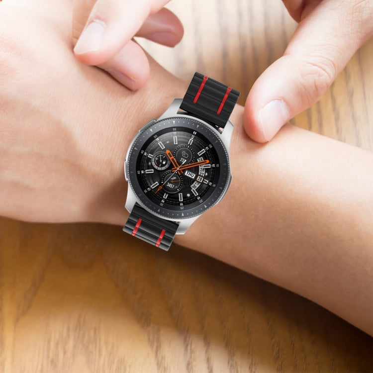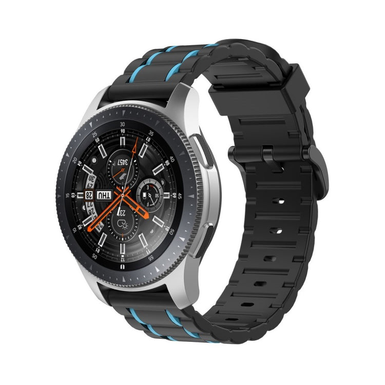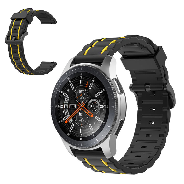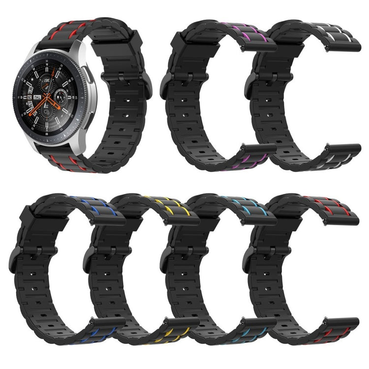 Oppgrader ditt smarte klokkeutstyr med vårt 22mm vertikale stripe bi-farge silikone klokkerem, spesielt designet for Samsung Galaxy Watch 46mm og Galaxy Watch 3 45mm. Denne remmen er laget av miljøvennlig silikonmateriale som er motstandsdyktig mot slitasje og vil vare lenge, noe som gjør den til et bærekraftig valg. Den myke og komfortable strukturen sikrer at du kan bruke klokken hele dagen uten ubehag. Med flere fargealternativer tilgjengelig, kan den enkelt tilpasses din personlige stil og behov. Dette er en ideell erstatning for din gamle eller ødelagte rem, og gir klokken nytt liv og et friskt utseende. Med en total lengde på 125 + 84mm og en bredde på 22mm, passer denne remmen perfekt til flere populære klokkemodeller, slik at du kan være trygg på at den vil være kompatibel med dine eksisterende enheter. Velg vårt klokkerem for å kombinere stil, komfort og holdbarhet på en enkel måte!