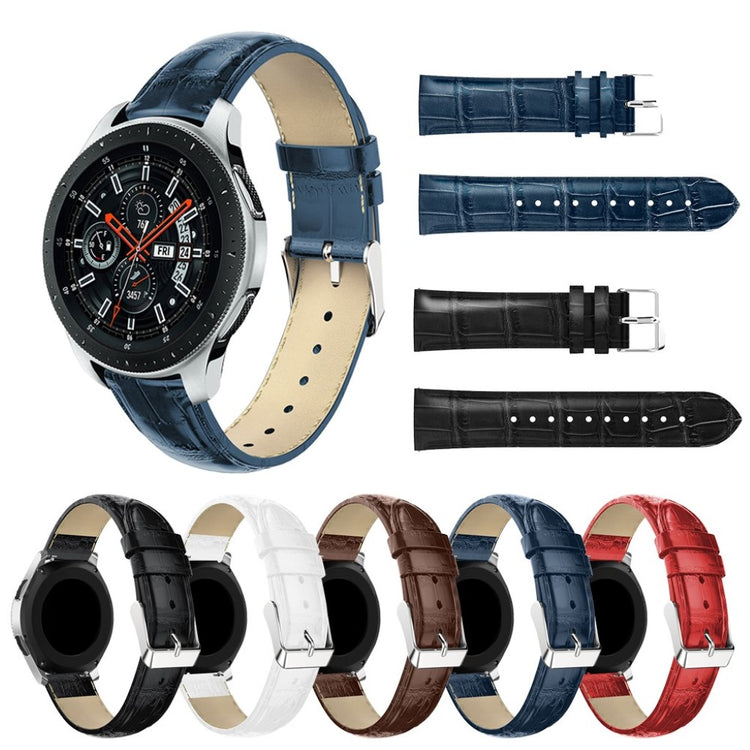 Dette smartwatch-remmen er laget av høykvalitets ekte lær med en stilren krokodilletekstur som gir et attraktivt utseende. Den har en metallspenne for enkel påføring og avtaking, samt justerbare hull for å tilpasse størrelsen etter håndleddet. En perfekt erstatning for din gamle, ødelagte rem, kompatibel med flere populære smartwatch-modeller.
