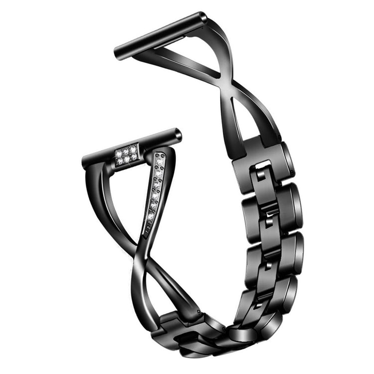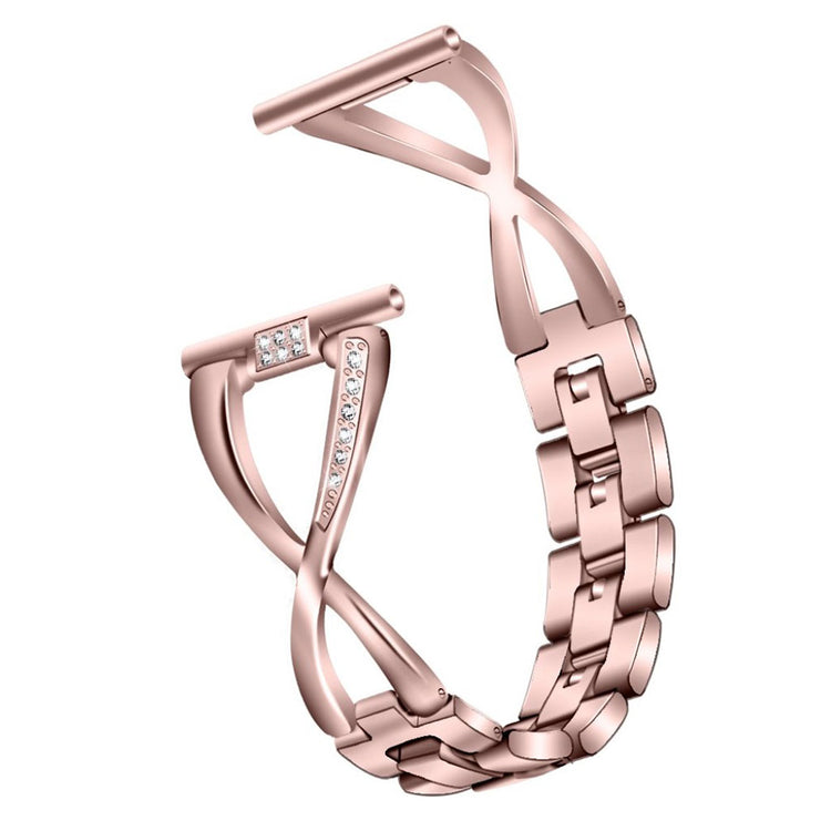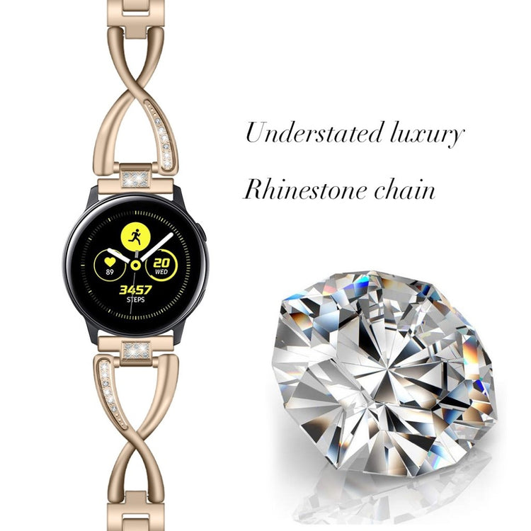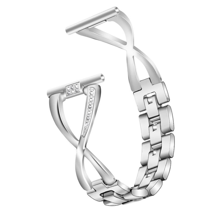 Oppgrader din smartklokke med denne stilige og slitesterke klokkenkenken i X-form. Laget av høy kvalitets aluminium, gir denne remmen et sofistikert og moderne utseende. Rhinestone-dekorasjonene gir et ekstra touch av eleganse og sørger for at klokken din skiller seg ut. Remmen er svetteavvisende, pustende og allergivennlig, noe som gir optimal komfort for daglig bruk. Perfekt for å gi din smartklokke et nytt liv, eller som en flott erstatning for en ødelagt rem.