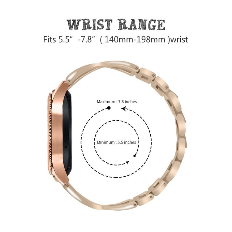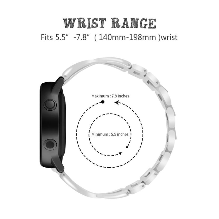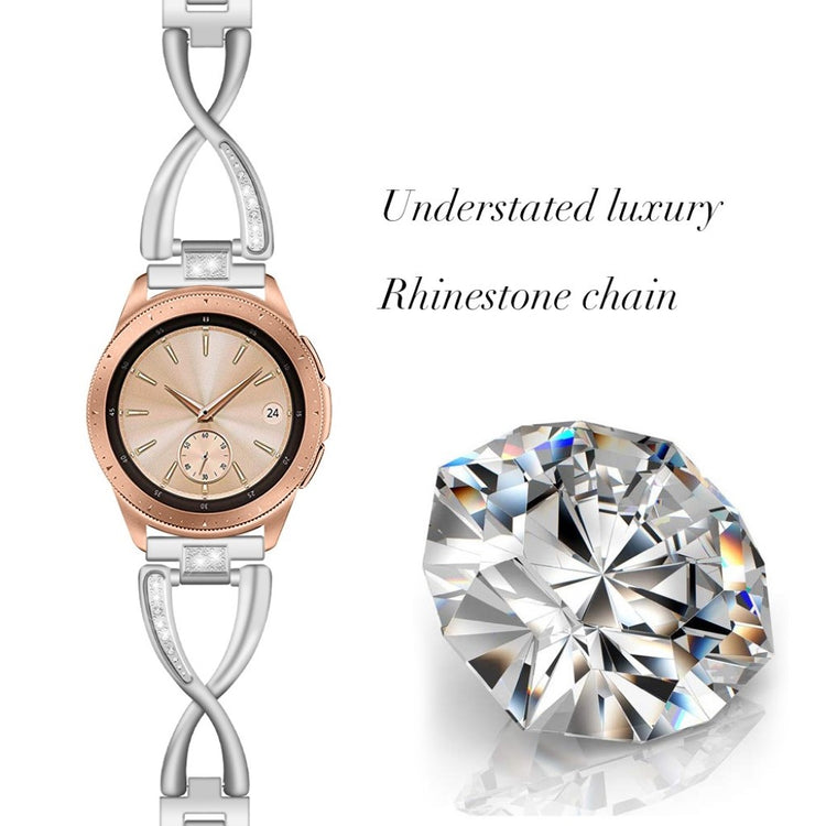 Oppgrader din smartklokke med denne stilige 20mm X-formede aluminiumlegering diamantremmen til Samsung Galaxy Watch 42mm. Laget av høy kvalitet aluminiumlegering, er denne remmen både holdbar og elegant. Den X-formede designen med rhinsten-dekor gir et øynefallende preg, perfekt for de som ønsker å legge til et snev av klasse til sitt tilbehør. Remmen er svettebestandig, pustende og allergivennlig, som gjør den komfortabel å bruke hele dagen. Tilpass klokken din med denne raffinerte stroppen og gi den et nytt liv. Den er også en utmerket erstatning for en brutt eller ubrukelig rem, noe som gir deg både stil og funksjonalitet. Med en lengde på 171 mm og en bredde på 20 mm passer remmen håndleddsomkrets fra 125 mm til 190 mm. Den er kompatibel med flere modeller, inkludert Garmin og Samsung, slik at du kan bruke den med flere enheter. Velg denne remmen for å både forbedre utseendet og komforten av din smartklokke!