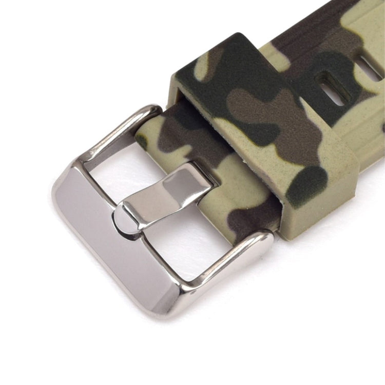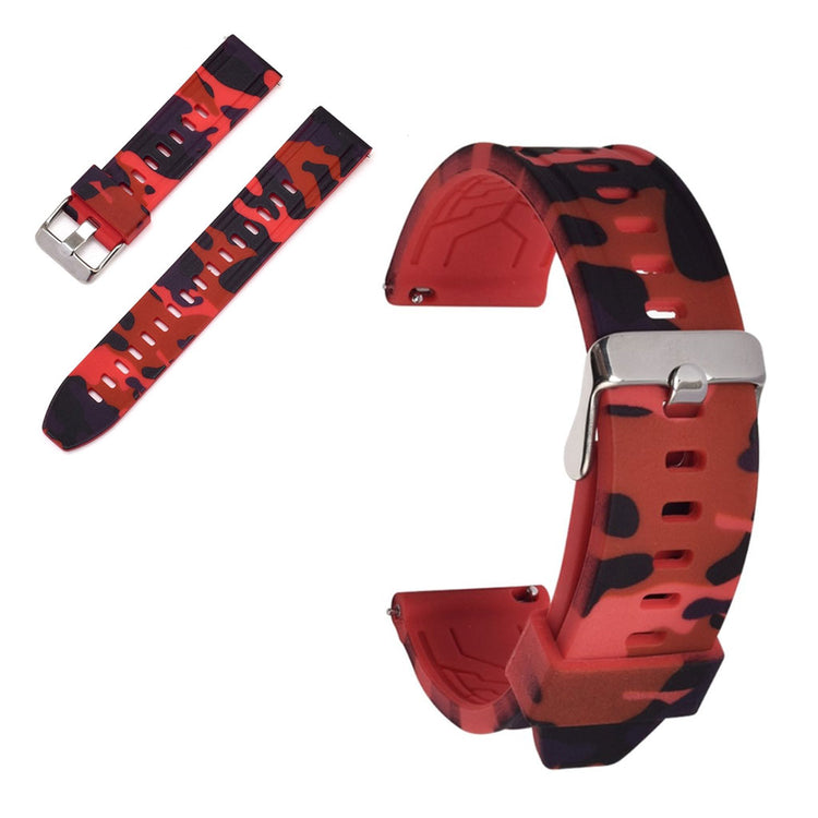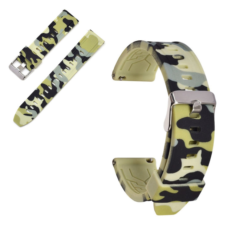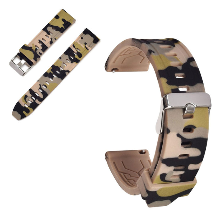 Denne kamuflasjemønstrede silikonreimen gir din smartklokke et moderne utseende. Den er laget av myk silikon med hull for rask varmeavledning og komfortabel bruk.