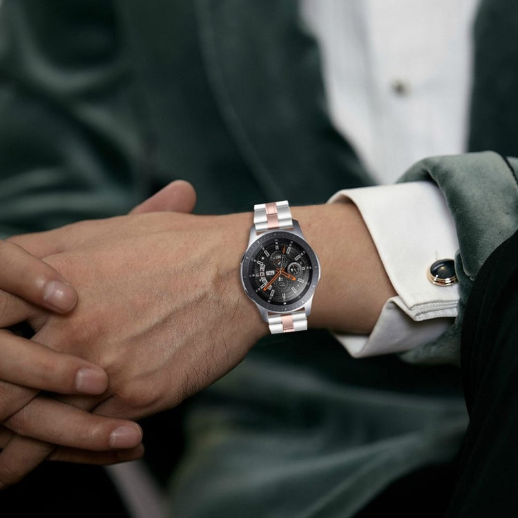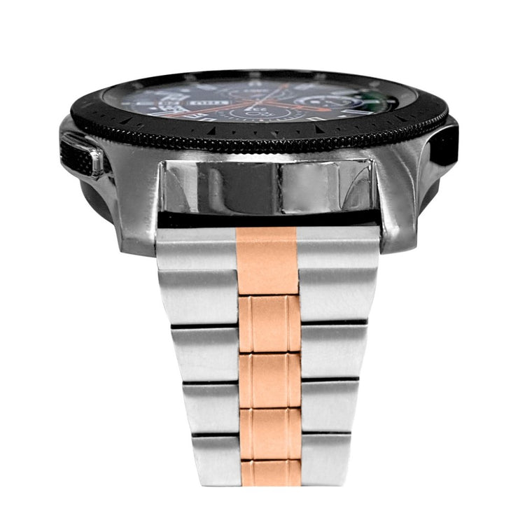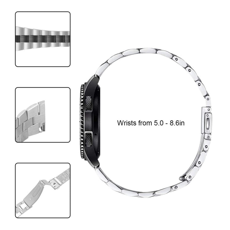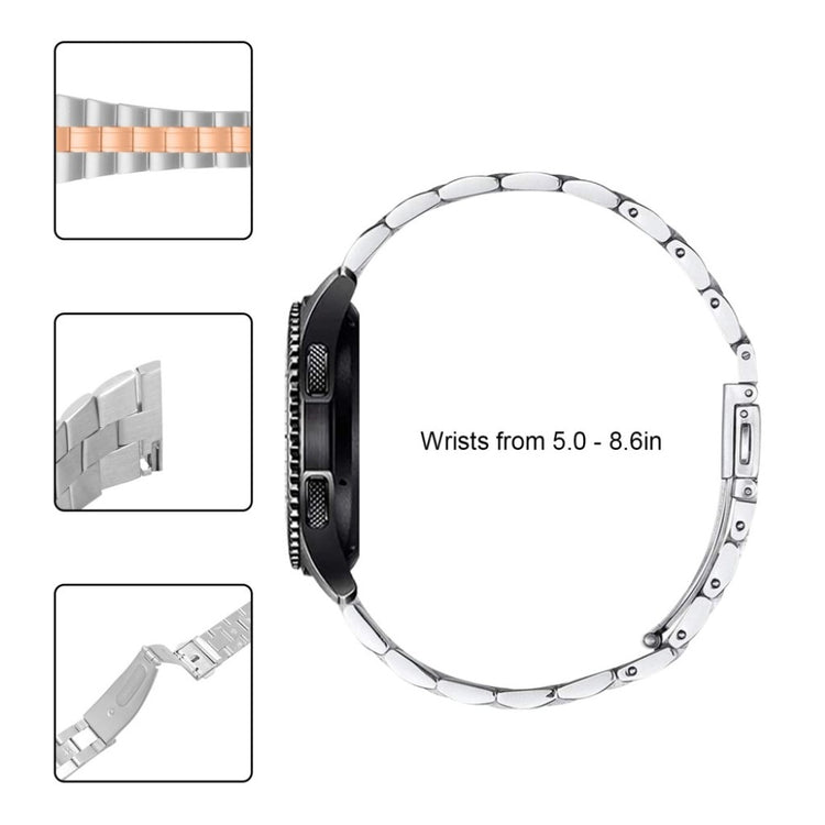 Oppgrader stilen din med et luksuriøst erstatningsbånd til din smartklokke! Dette klokkeremmet med tre perler og spenne er laget av kvalitets rustfritt stål, som gir både holdbarhet og et eksklusivt utseende. Den utsøkte håndverket og moderne designet gir et fashionable preg som passer til enhver anledning, enten det er på jobb eller i fritiden. Med en moderat(mykt) følelse sørger dette båndet for at det er komfortabelt å bære hele dagen. Dette er den perfekte løsningen for deg som har et gammelt eller ødelagt klokkerem og ønsker å gi ditt utstyr nytt liv. Passer håndleddsomkretser fra 5,0 til 8,6 tommer, og med en lengde på 184 mm og bredde på 22 mm, sørger dette båndet for perfekt tilpasning til din Samsung Galaxy Watch 46mm eller Gear S3 Classic/Frontier. Oppdater stilen din i dag med dette elegante og funksjonelle klokkeremmet!