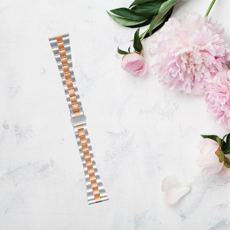 Erstatningsrem laget av kvalitets rustfritt stål med et elegant design og tre perler som gir et luksuriøst preg. Remmen har moderat mykhet og er komfortabel å ha på seg, noe som gjør den ideell for både hverdag og spesielle anledninger. Med en lengde på 184 mm og en bredde på 22 mm, passer den til håndleddmål fra 5,0 til 8,6 tommer.