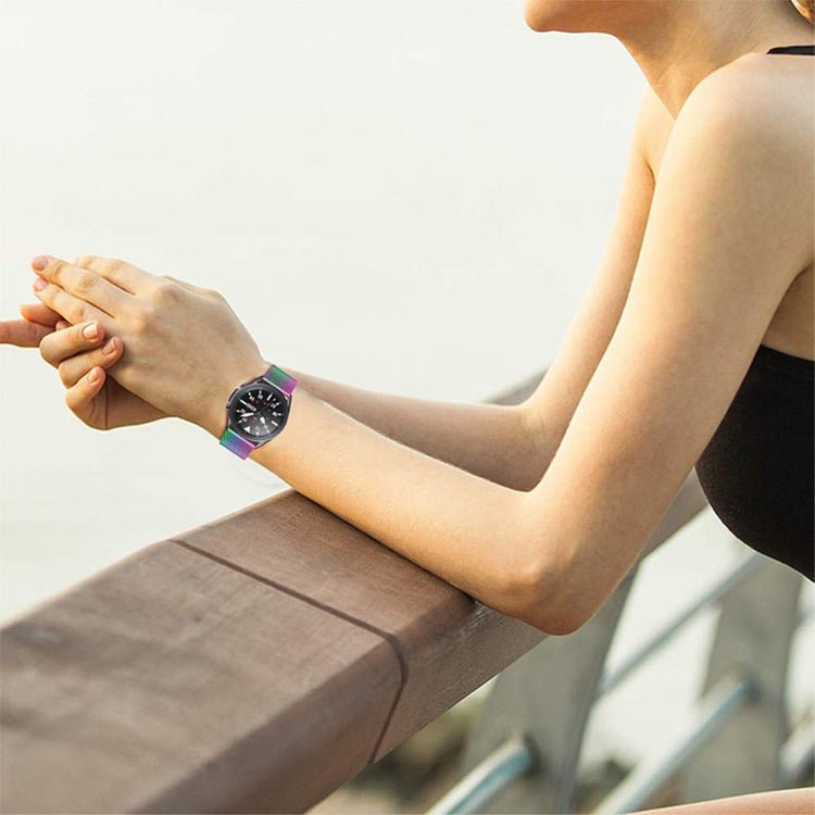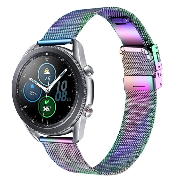 Denne justerbare 22mm Milanese-remmen i rustfritt stål er designet med en skilpaddeformet spenne for Samsung Galaxy Watch 46mm/Gear S3 Classic. Når du skal ta klokken av eller på, trykker du bare på spennen.