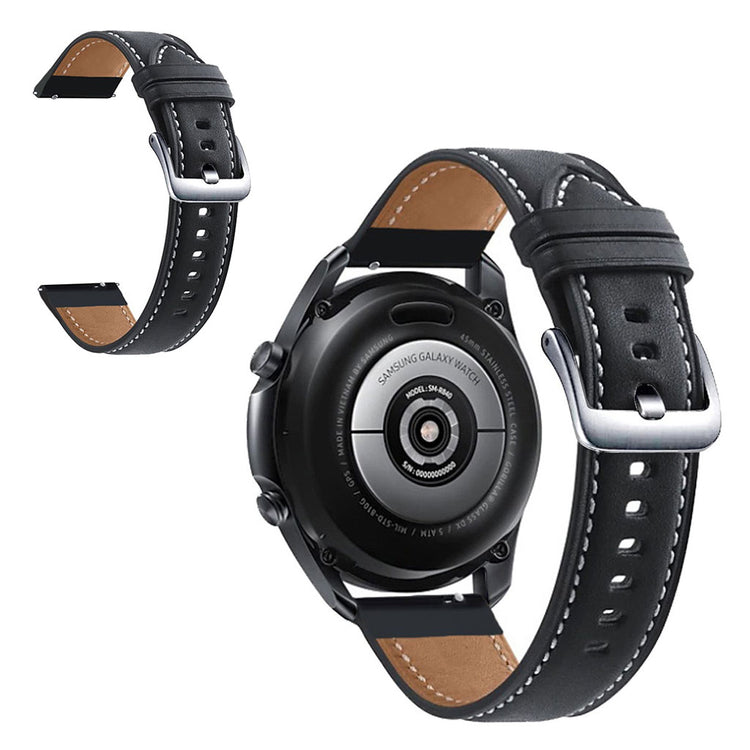 Oppgrader din smartwatch med et nytt 22mm ekte lærrem som er perfekt for Samsung Galaxy Watch3 45MM R840. Dette høy-kvalitets ekte lær-produktet er både mykt og slitesterkt, noe som gir en luksuriøs følelse gjennom hele dagen. Remmen har en holdbar spenne som gjør det enkelt å ta den av og på, og hullene på remmen gjør det enkelt å justere den etter din størrelse. Dette er en ideell erstatning for en gammel eller ødelagt rem, og vil gi klokken din et friskt og stilfullt utseende. Med en lengde på 95mm + 130mm og en vekt på kun 15g, sitter den behagelig på håndleddet. Den er også kompatibel med flere populære modeller, inkludert Samsung Galaxy Watch 46mm, Gear S3, og Amazfit Stratos, noe som gjør den til et allsidig valg. Investér i en ny rem og gi klokken din et nytt liv!