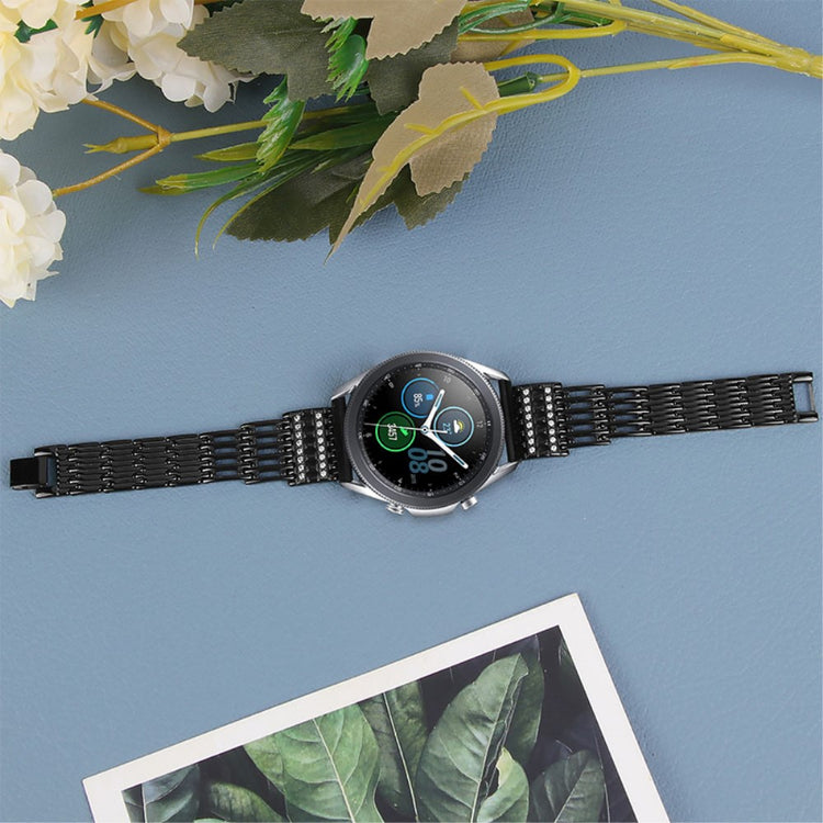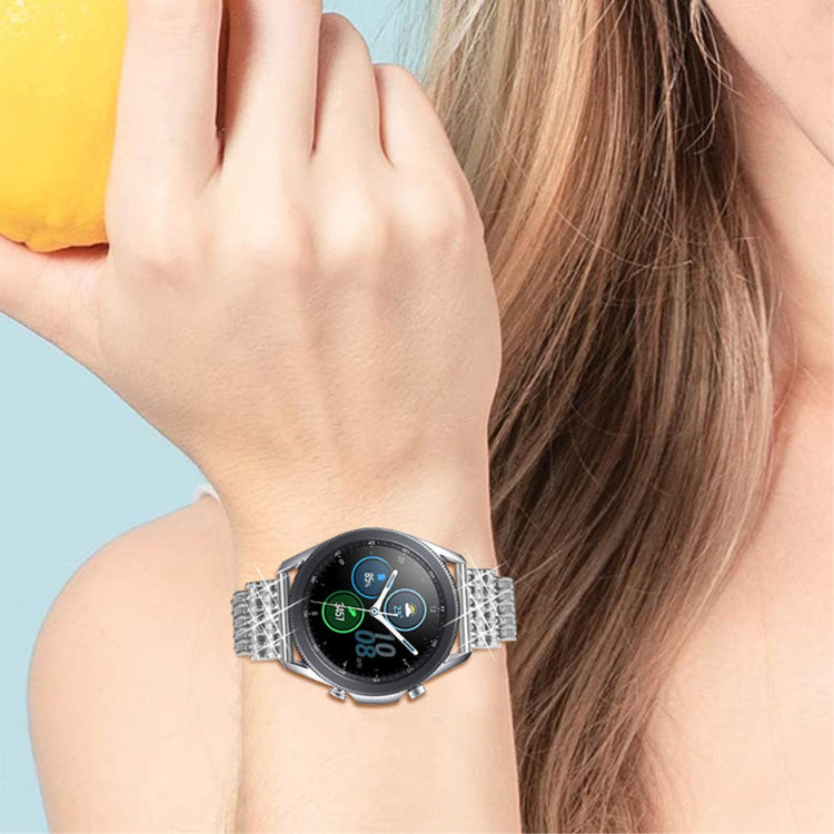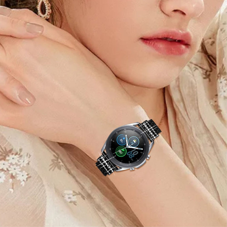 Bytt ut det gamle, defekte armbåndet med dette stilige armbåndet i premium 304 rustfritt stål, som er både slitesterkt og robust. Den karakteristiske hulede designen og de glitrende rhinestone-dekorasjonene gir et elegant og unikt utseende. Passer håndleddsomfang fra 5,5 til 8,1 tommer, og har en bredde på 22 mm for perfekt tilpasning til smartklokker som Samsung Galaxy Watch3 45mm og Galaxy Watch 46mm.