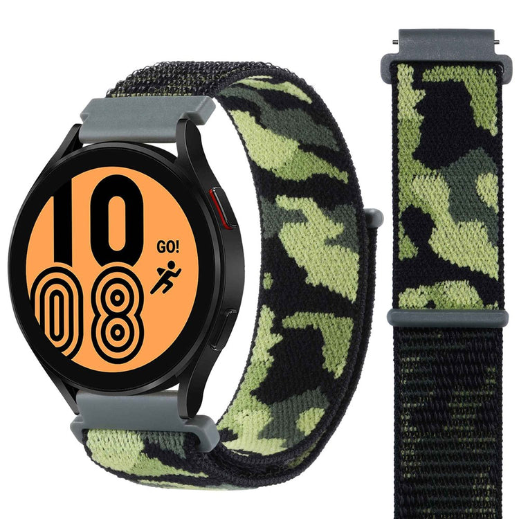 Denne kamuflasjereimen i nylon gir smartklokken din et sporty og stilig utseende. Materialet er pustende og behagelig å ha på, perfekt for aktiv bruk. Reimen er enkel å justere og tilpasse til håndleddet ditt, og den er lett å ta av og på.