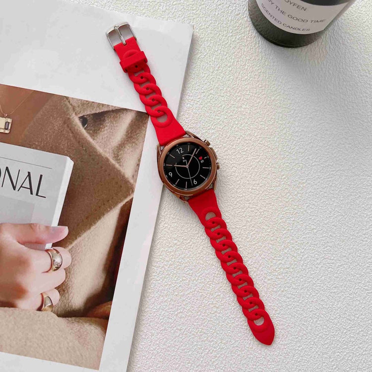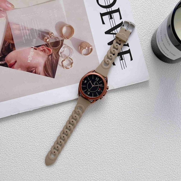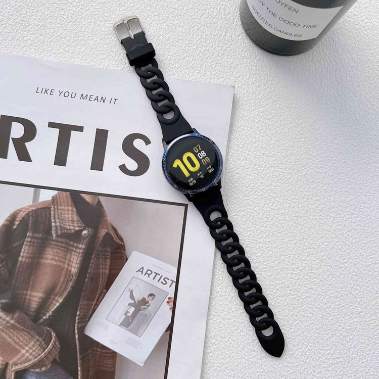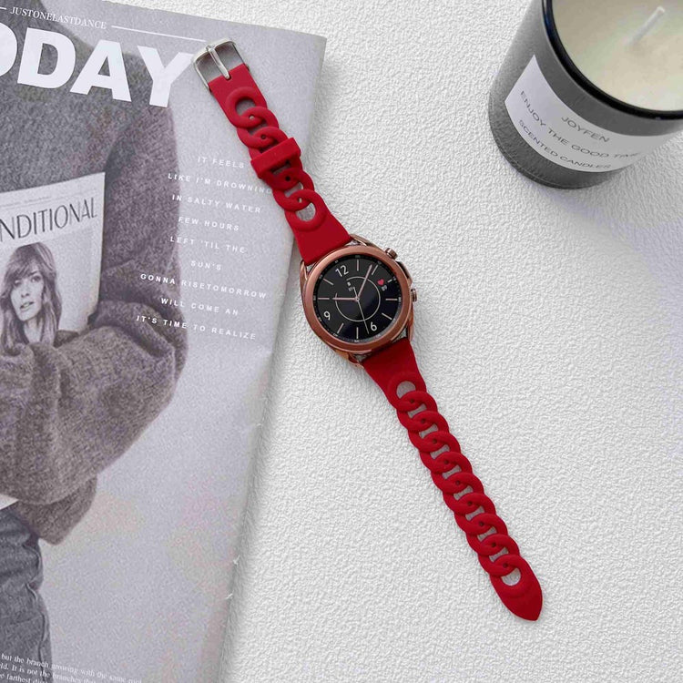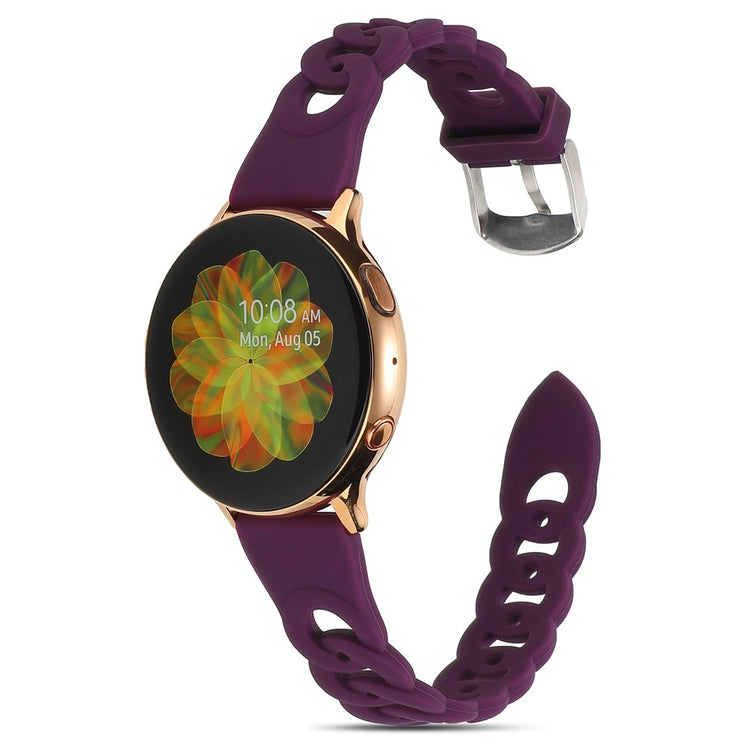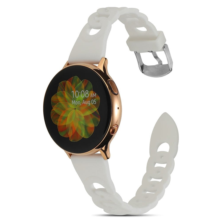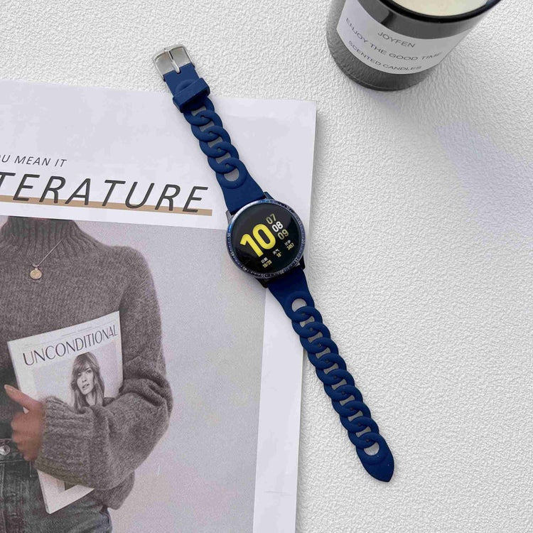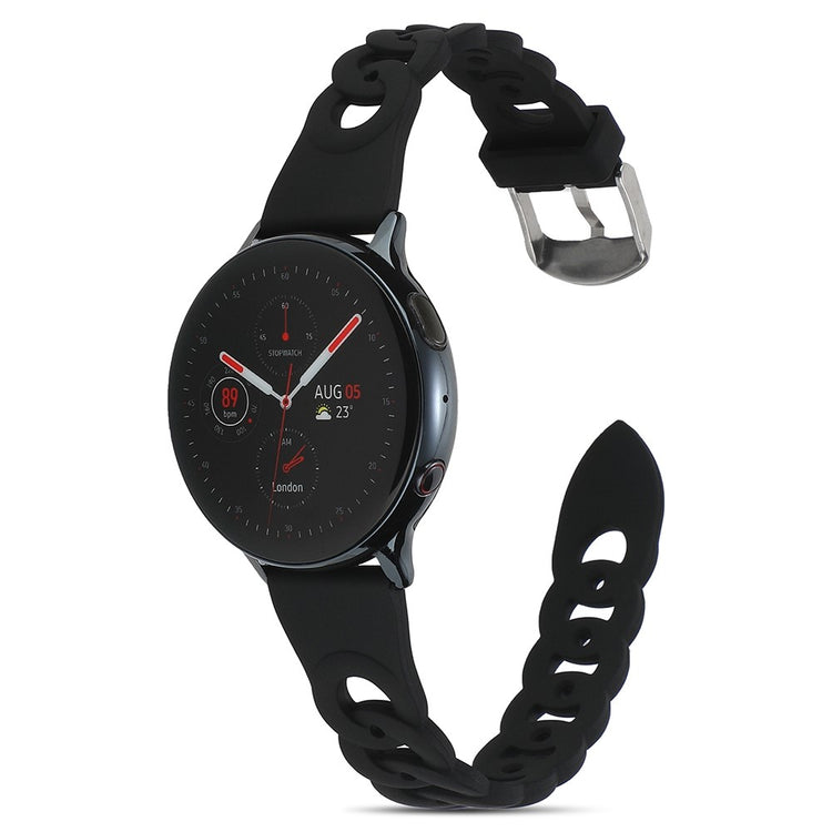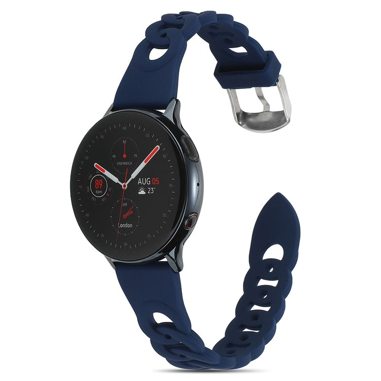 Oppgrader din smartklokke med dette stilige og komfortable erstatningsbåndet laget av høy-kvalitets silikon. Det er mykt og behagelig å ha på, noe som gjør det perfekt for daglig bruk. Med sitt enkle, men unike sirkeldesign skiller dette båndet seg ut og gir et moderne preg til klokken din. Den smarte designen med flere hull gjør det enkelt å justere størrelsen, slik at du kan finne den perfekte passformen for håndleddet ditt. Dette båndet er et ideelt valg for å erstatte et gammelt eller skadet bånd, og gir deg dermed muligheten til å fornye stilen på klokken din. I tillegg er det tilgjengelig i flere farger, så du kan velge den som passer best til din personlige stil. Dette båndet er kompatibelt med en rekke populære smartklokker, noe som gjør det til et universelt alternativ for de fleste brukere. Sikre deg dette båndet for å gi klokken din et friskt og stilfullt utseende!