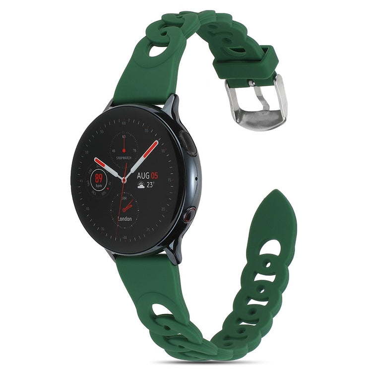 Dette er et komfortabelt og høykvalitets silikonarmbånd designet for smartklokker som Garmin Venu 2 Plus og Samsung Galaxy Watch4. Den unike sirkeldesignen gir et stilfullt utseende, mens det praktiske hullmønsteret lar deg enkelt justere størrelsen. Et ideelt valg for å erstatte ditt gamle eller ødelagte armbånd, med flere farger tilgjengelig for å møte ulike stilbehov.
