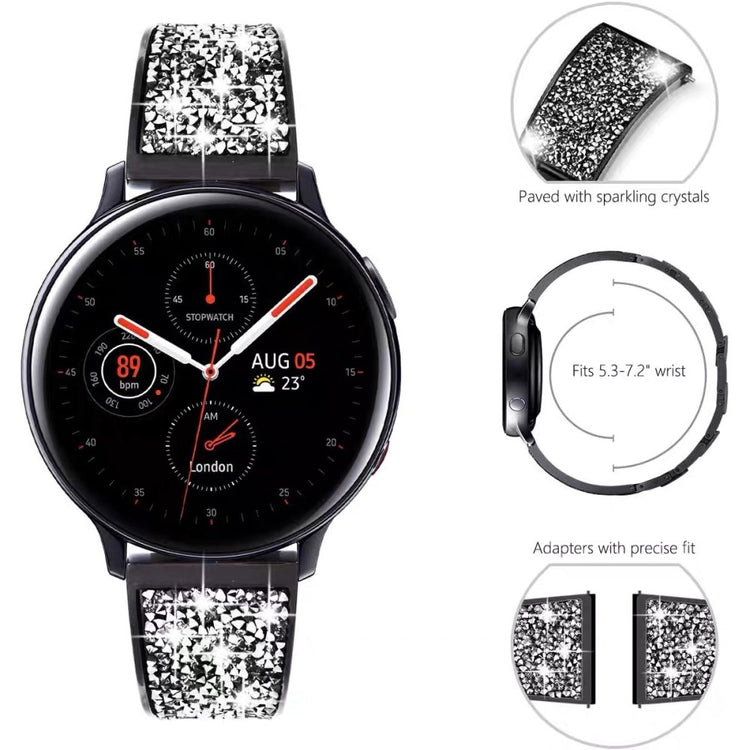 Oppgrader din klokke med dette stilige 20mm rustfritt stål glitterrem som passer til en rekke smartklokker, inkludert Samsung Galaxy Watch og Garmin Venu. Laget av høy kvalitets rustfritt stål, er denne klokken holdbar og motstandsdyktig mot slitasje, noe som gjør den ideell for daglig bruk. Den unike glitterdesignen gir et glansfullt og moderne preg, perfekt for både forretningsmøter, fester og hverdagsliv. Dette er den perfekte erstatningen for din gamle eller ødelagte klokkereim, som gir et friskt og elegant utseende til din klokkebeholdning. Med en størrelse på 185mm og mulighet til å justere håndleddsomkretsen mellom 135-215mm, passer denne reimen de fleste håndledd. Invester i en klokkerem som kombinerer stil og funksjonalitet og hever utseendet ditt på en enkel måte!