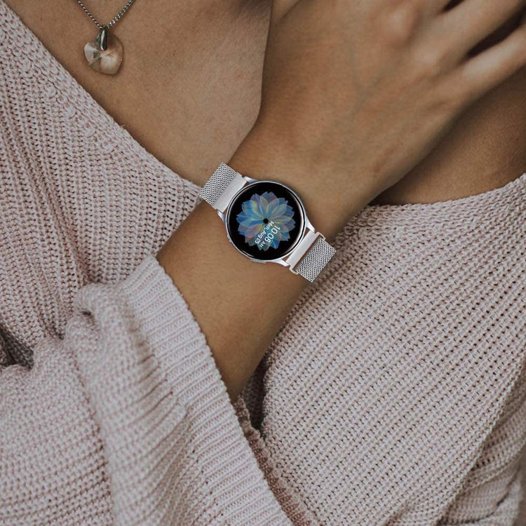 Oppgrader din klokke med et band som kombinerer stil og funksjonalitet! Denne erstatningsremmen i premium rustfritt stål er både eksklusiv og holdbar, noe som gjør den perfekt for hverdagsbruk. Den justerbare magnetlukkingen sikrer at bandet sitter trygt og komfortabelt rundt håndleddet ditt, samtidig som det gir et strømlinjeformet utseende. Den pustende fine maske-designen reduserer svette og gir økt komfort, slik at du kan ha på deg klokken hele dagen uten ubehag. Dette armbåndet er en ideell erstatning for ditt gamle, ødelagte band, og det er enkelt å installere og fjerne. Med en omkrets på mellom 5,5 og 8,1 tommer og en bredde på 20 mm passer dette armbåndet perfekt til din TicWatch 2, TicWatch E og TicWatch C2. Opplev forskjellen med et stilrent og funksjonelt armbånd i dag!
