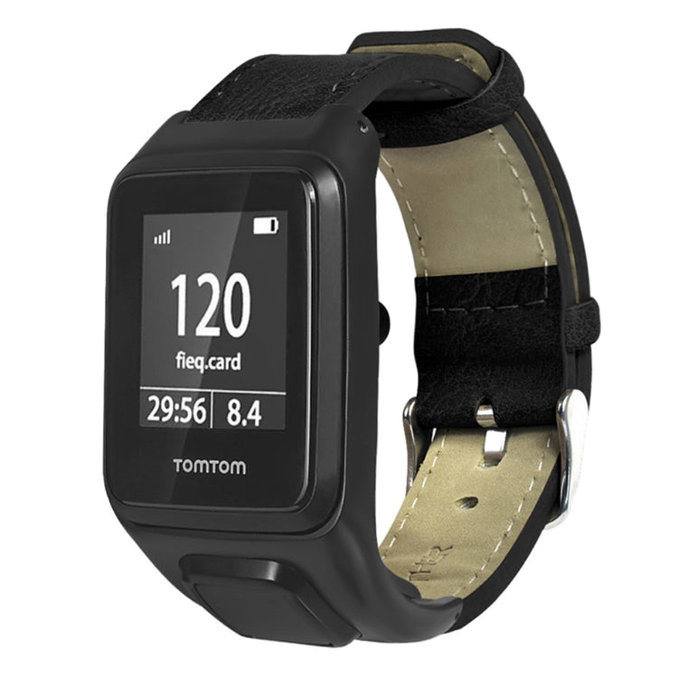 TomTom Runner 3 / Adventurer Watch Band Genuine Cow Leather Strap with Case - Black#serie_2