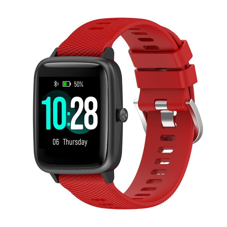Utforsk den perfekte erstatningen for ditt gamle eller ødelagte smartwatch-rem med dette stilige silikonremmen i høy kvalitet. Den myke og komfortable designen gjør at du kan bruke klokken hele dagen uten ubehag. Med en unik og moderne kryssstripe-design vil denne remmen virkelig skille seg ut. Takket være det flere hull-design kan du enkelt justere størrelsen for en perfekt passform på håndleddet ditt. Denne remmen er ikke bare praktisk, men også tilgjengelig i flere farger, slik at du kan velge den som passer din personlige stil best. Kompatibel med en rekke modeller, inkludert Boat Watch STORM og Xiaomi Haylou Solar LS01, er dette det ideelle tilbehøret for enhver smartwatch-entusiast. Oppgrader stilen og komforten til din smartwatch i dag!