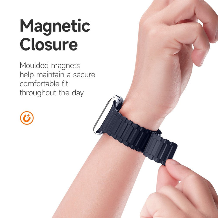 Remmen har en magnetisk spenne som gjør det enkelt å justere størrelsen. Det konkave-konvekse designet sørger for sikker lukking.