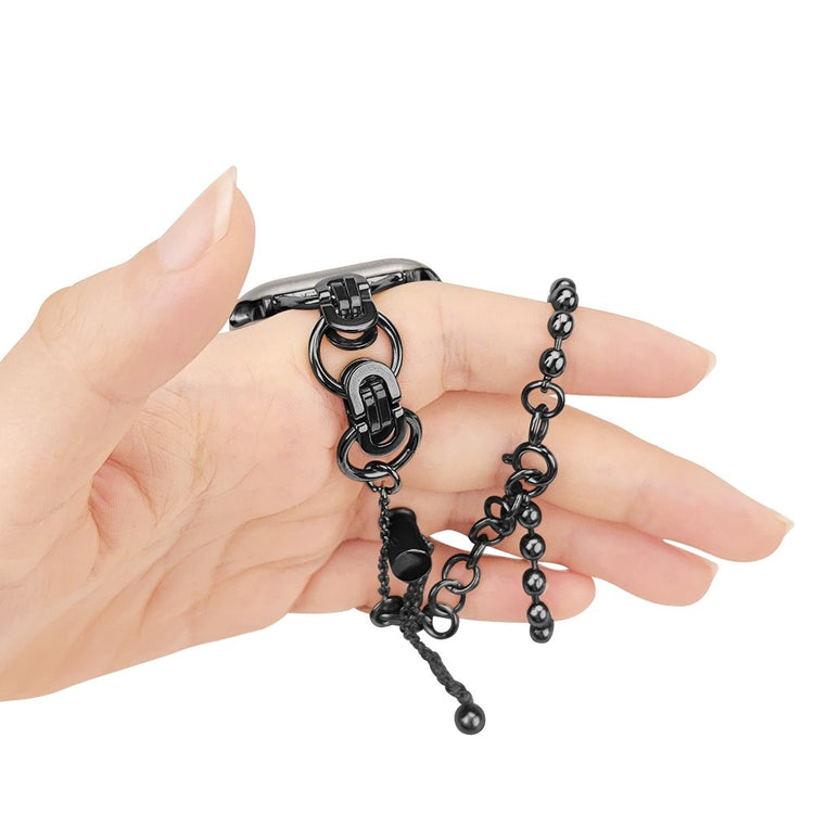 Oppgrader Apple Watch-en din med denne elegante og slitesterke lenken i premium rustfritt stål. Med en glatt overflate og detaljert utførelse, gir denne remmen optimal komfort. Det toflerdige designet gir et stilig og delikat utseende, og er en perfekt erstatning for din gamle, slitte rem. Vis din gode smak og gi klokken din et løft!