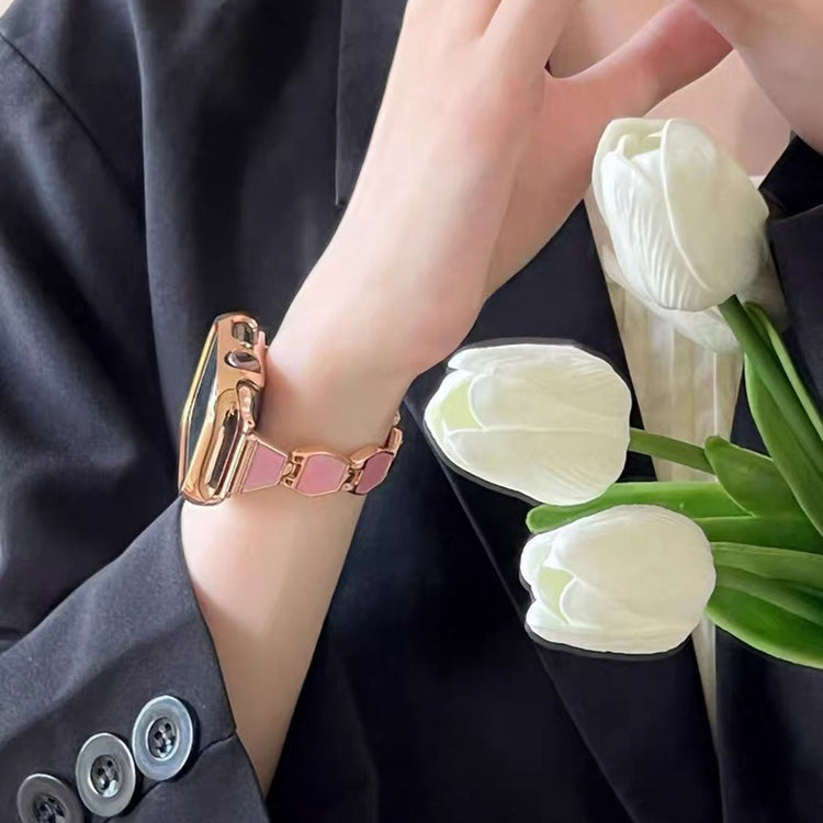 Oppgrader utseendet på din smartwatch med vårt stilige erstatningsrem! Denne klokkeremmen passer til Apple Watch Series 9 / 8 / 7 41mm / 6 / 5 / 4 / SE (2023) / SE (2022) / SE 40mm / 3 2 1 38mm og er laget av kvalitetsmaterialer, som sikrer at den tåler daglig bruk over tid. De unike skallet stykkene gir et trendy preg til remmen, noe som gjør den til et perfekt tilbehør for enhver anledning. Med detaljert håndverk og en jevn overflate er denne remmen behagelig å ha på seg gjennom hele dagen. Den lille spenne-designen gjør det enkelt å ta på og av remmen, slik at du kan bytte stil når som helst. Dette er den ideelle erstatningen for din gamle, ødelagte klokkerem, og med en størrelse på 175mm passer den håndleddet ditt perfekt, uansett størrelse.