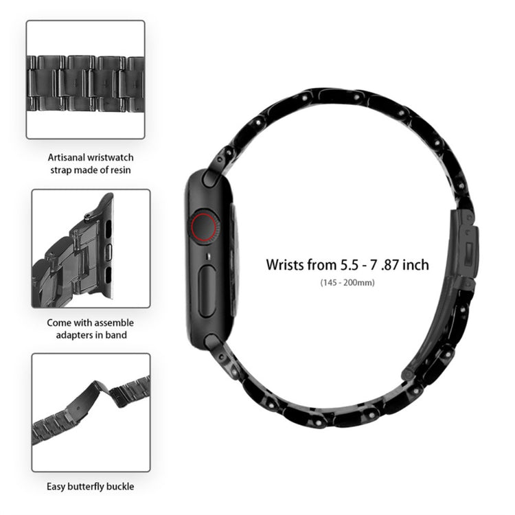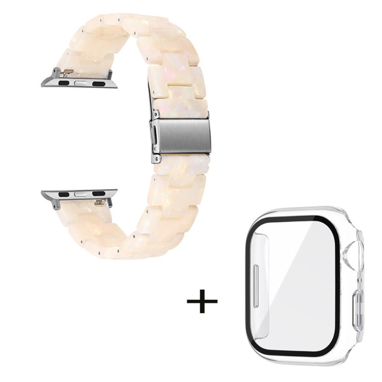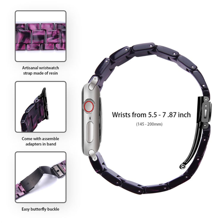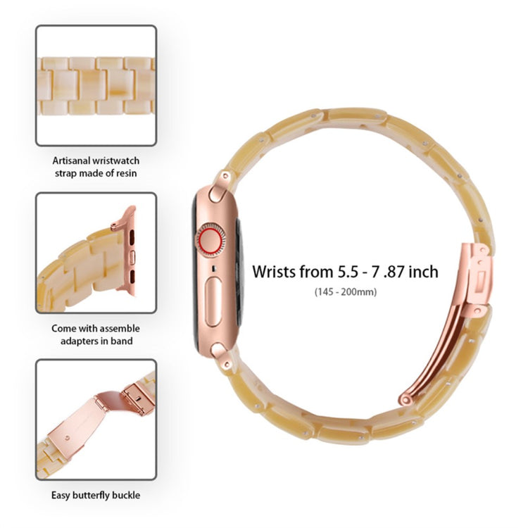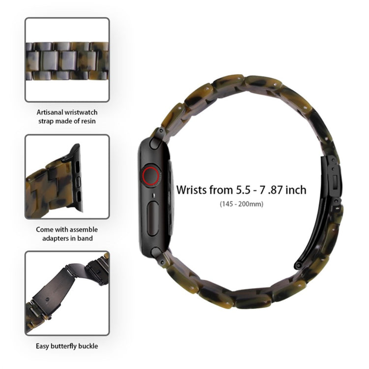 Oppgrader din Apple Watch Series 6 / 5 / 4 / SE / SE (2022) med vårt stilige 3-beads resin klokkerem med foldespenne og transparent klokkeveske. Denne remmen er laget av høykvalitets resinmateriale som er både vanntett og rustfritt, noe som sikrer langvarig holdbarhet og komfort. Hver del av resin er håndpolert av erfarne håndverkere, noe som gir et raffinert utseende og en luksuriøs følelse. Med vår fleksible design kan du enkelt demontere og erstatte remmen, takket være den solide rostfrie ståladapteren og foldespennen som gir en trygg lukking. I tillegg beskytter det transparente klokkevesken din klokke mot fall, riper og annen skade, noe som gir deg trygghet i hverdagen. Klokkeremmen passer håndleddsomkrets fra 5.5 til 7.87 tommer (140-200 mm), og er derfor ideell for de fleste. Velg denne klokkenremmen for å kombinere stil og funksjonalitet på beste måte!