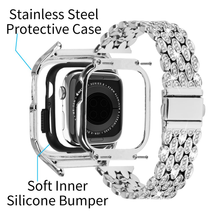 Oppgrader din Apple Watch med dette stilige og funksjonelle armbåndet i rustfritt stål! Laget av høy kvalitet, er dette armbåndet både eksklusivt og holdbart, perfekt for daglig bruk. Den smarte kombinasjonen av armbåndet og klokken gir ekstra beskyttelse til din klokke, slik at du kan være trygg på at den holder seg fin lenger. Med glitrende rhinestones får du ikke bare et praktisk tilbehør, men også et unikt og stilfullt design som virkelig personliggjør smartklokken din. Den klassiske foldelåsen gir ekstra sikkerhet, og den fine håndverkskvaliteten sikrer en glatt overflate som er behagelig å ha på seg. Dette armbåndet er den ideelle erstatningen for ditt gamle eller ødelagte armbånd, og passer håndleddsomkrets fra 5,5 til 8,1 tommer.