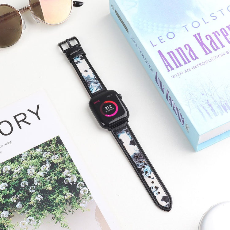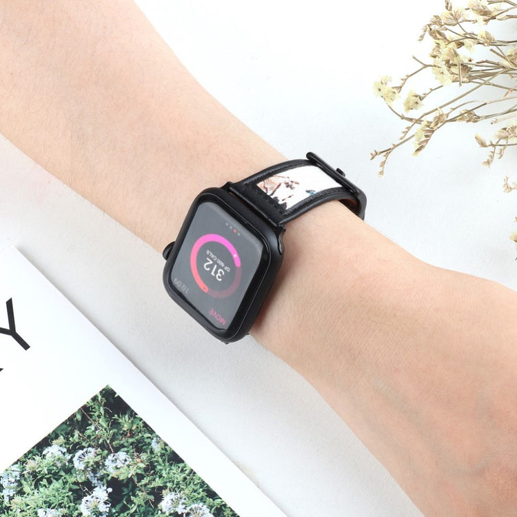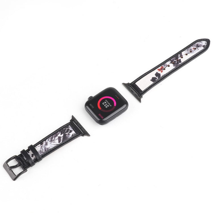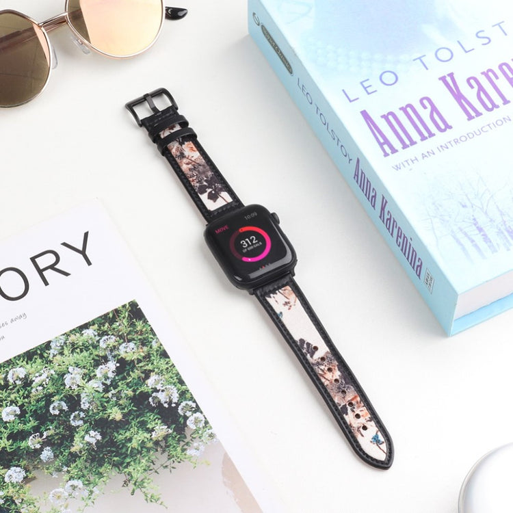 Oppgrader stilen din med dette unike klokkeremmen med motiv av fjell- og vannlandskap, perfekt for din Apple Watch Series 7 / 8 41mm, 4 / 5 / 6, SE, SE(2022) 40mm, og 1 / 2 / 3 38mm! Denne remmen gir deg muligheten til å personalisere enheten din på en stilfull måte. Laget av høykvalitets lær, tilbyr remmen en moderat mykhet og utmerket håndverk, noe som gjør den komfortabel å ha på seg gjennom hele dagen. Med et flere-hull design er det enkelt å justere størrelsen for en perfekt passform. Du trenger ikke å bekymre deg for komplisert installasjon; remmen er lett å montere og fjerne. Skap et personlig preg på din smartwatch med dette fantastiske tilbehøret!