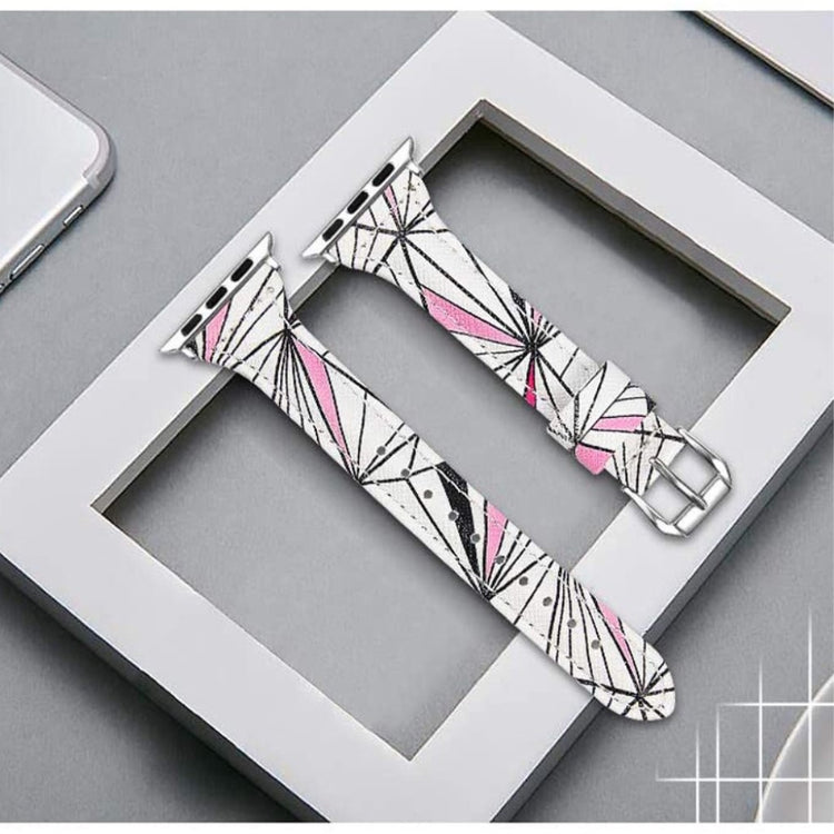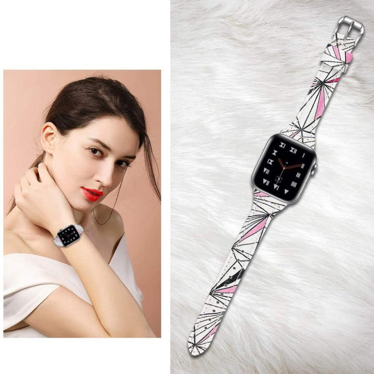 Denne stilige klokkereimen i ekte skinn gir en myk og komfortabel brukeropplevelse. Med sitt unike geometriske mønster gir den et vakkert og stilig preg til din Apple Watch.