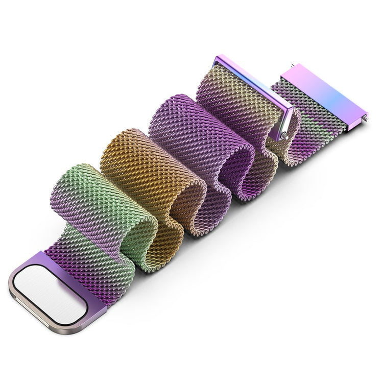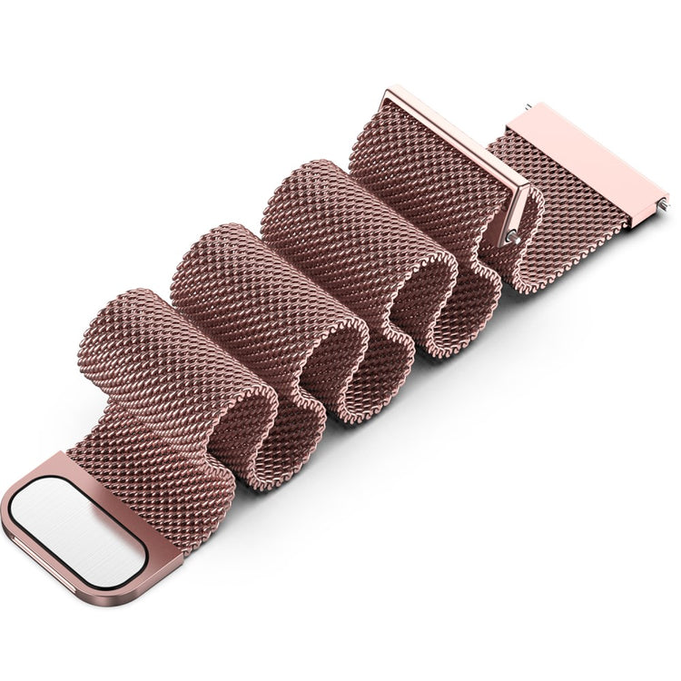 Oppdag vår pustende Milanese rustfritt stål mesh band som gir en lett og komfortabel opplevelse for ditt smartklokke. Den enkle utformingen gjør at den enkelt kan matches med ditt daglige antrekk, og den er et ideelt tilbehør for å personalisere din smartklokke. Kompatibel med flere modeller, inkludert Samsung Galaxy Watch og Garmin, er dette armbåndet et must-have!