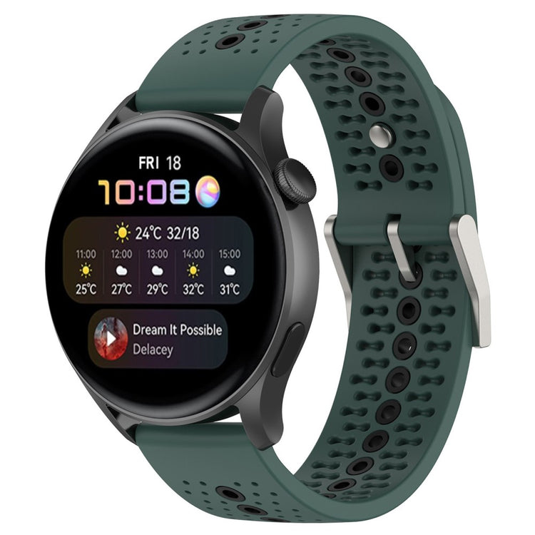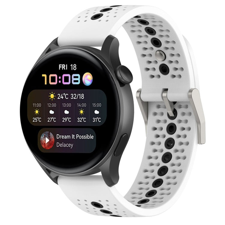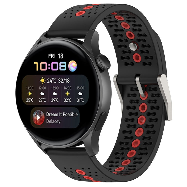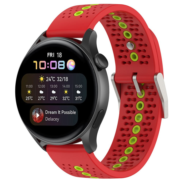 Ønsker du å gi smartklokken din et nytt og friskt utseende? Vår 20mm Bi-color silikonrem er det perfekte valget! Laget av høy kvalitet silikon gir remmen en myk og behagelig følelse på håndleddet, noe som gjør den ideell for daglig bruk. Den smarte designen med flere hull gjør det enkelt å justere remmen i henhold til håndleddsomkretsen din, slik at du kan oppnå en perfekt passform. Dette er også en utmerket erstatning for en gammel eller ødelagt rem, slik at du kan fornye stilen på klokken din uten å bytte ut hele enheten. Kompatibiliteten med en rekkekjente smartklokker som Samsung Galaxy Watch og Huawei Watch, gjør dette til et fleksibelt valg for alle. Oppgrader stilen din og skaff deg en rem som virkelig fremhever din personlighet!