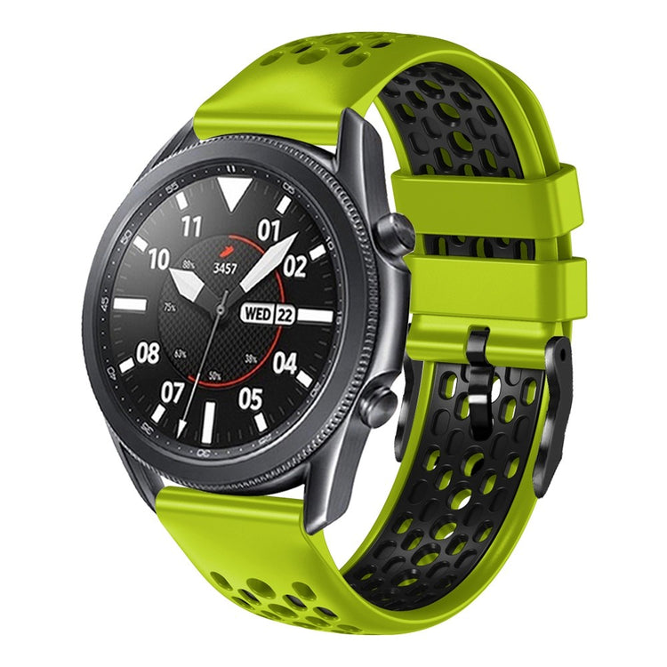Oppgrader din smartklokke med et nytt spennende armbånd! Dette armbåndet er laget av kvalitets silikon, som gir en myk og komfortabel opplevelse hele dagen. Det stilige designet med fem rader med hull gjør at du kan tilpasse passformen til håndleddet ditt, og sikre at det sitter godt, uansett aktivitet. Armbåndet er vannavstøtende og svettebestandig, noe som gjør det ideelt for både trening og hverdagsbruk. Du vil også sette pris på det enkle pin-buckle designet som gjør det lett å justere størrelsen etter eget ønske. Dette er en perfekt løsning som erstatning for ditt gamle eller defekte armånd! Velg blant flere fargealternativer for å matche din personlige stil. Dette armbåndet passer til en rekke modeller, inkludert Samsung Galaxy Watch og Huawei Watch, noe som gir deg flere muligheter til å finne det perfekte armbåndet for din smartklokke. Gjør en investering i både stil og funksjonalitet med dette armbåndet!
