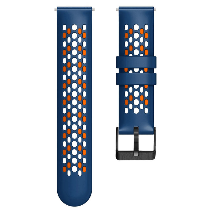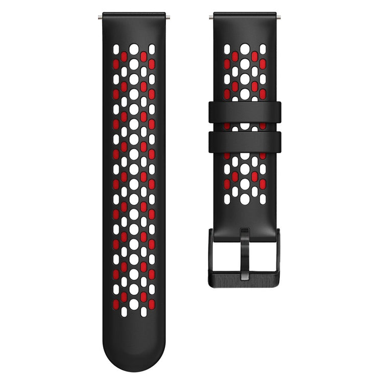 Denne stilige og slitesterke klokkereimen er laget av kvalitetssilikon, noe som gjør den myk og behagelig å ha på. Med sitt tofarget design og fem rader med hull får klokken et moderne og sporty utseende. Reimen er vanntett og svettebestandig, og tåler derfor både trening og hverdagsbruk.