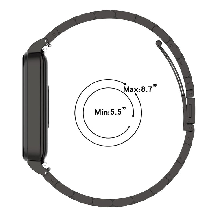 Oppgrader stilen og funksjonaliteten til din smartklokke med et rem for Xiaomi Redmi Band 2 som kombinerer et elegant armbånd av høy kvalitet i rustfritt stål med en praktisk klokke-veske. Dette produktet gir ikke bare din klokke en nyttig beskyttelse, men det tilfører også en luksuriøs følelse til din hverdag. Med sin førsteklasses håndverk og glatte overflate, er dette armbåndet komfortabelt å bruke hele dagen. Den er et ideelt alternativ for de som ønsker å erstatte et gammelt eller ødelagt armbånd. Med en lengde på 252 mm og mulighet for håndleddsomkrets mellom 5,5 og 8,7 tommer, passer det de fleste håndleddene. Unn deg selv eller en du er glad i en stilfull oppgradering med dette holdbare og eksklusive tilbehøret til din smartklokke!