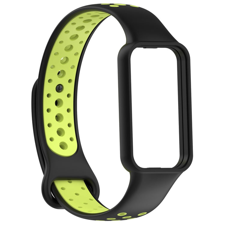 Oppgrader smartklokken din med et armbånd som kombinerer både stil og funksjonalitet. Dette armbåndet er laget av høykvalitets silikon, som sikrer at det er komfortabelt å bruke hele dagen. Takket være materialets kroppsnære egenskaper er det ikke skadelig for huden og forårsaker ingen allergiske reaksjoner. Armbåndet er mykt og lett, samt vannavstøtende, noe som gjør det perfekt for både daglig bruk og trening. Den smarte designen med dualfarger og pustende hull gjør det enkelt å justere lengden for optimal passform. Dette armbåndet gir også ekstra beskyttelse til klokken din, noe som er ideelt for forskjellige anledninger – enten det er på jobb eller i fritiden. Med et utvalg av farger kan du enkelt finne et armbånd som passer din stil. Dette armbåndet er den perfekte erstatningen for et gammelt eller ødelagt armbånd og gir et friskt pust til din smarte enhet.