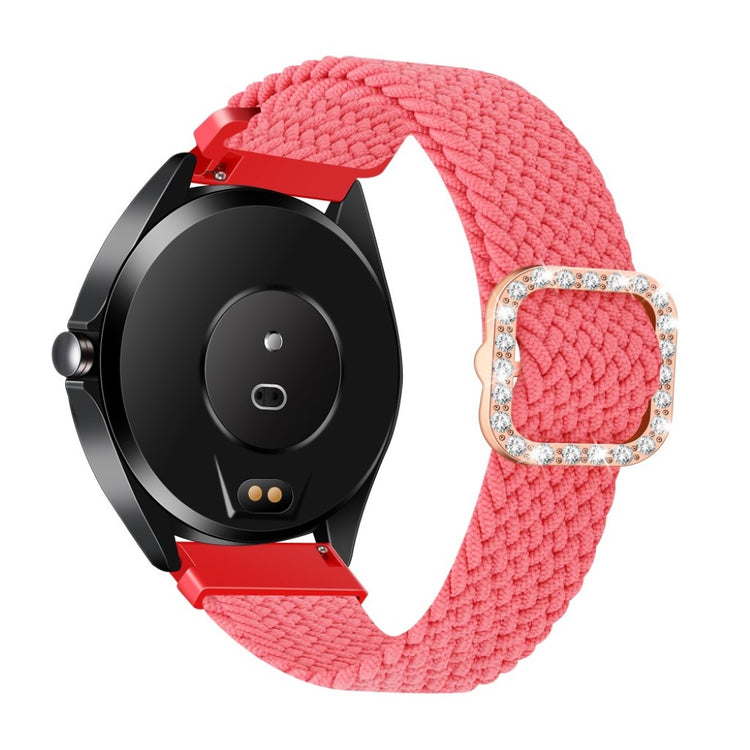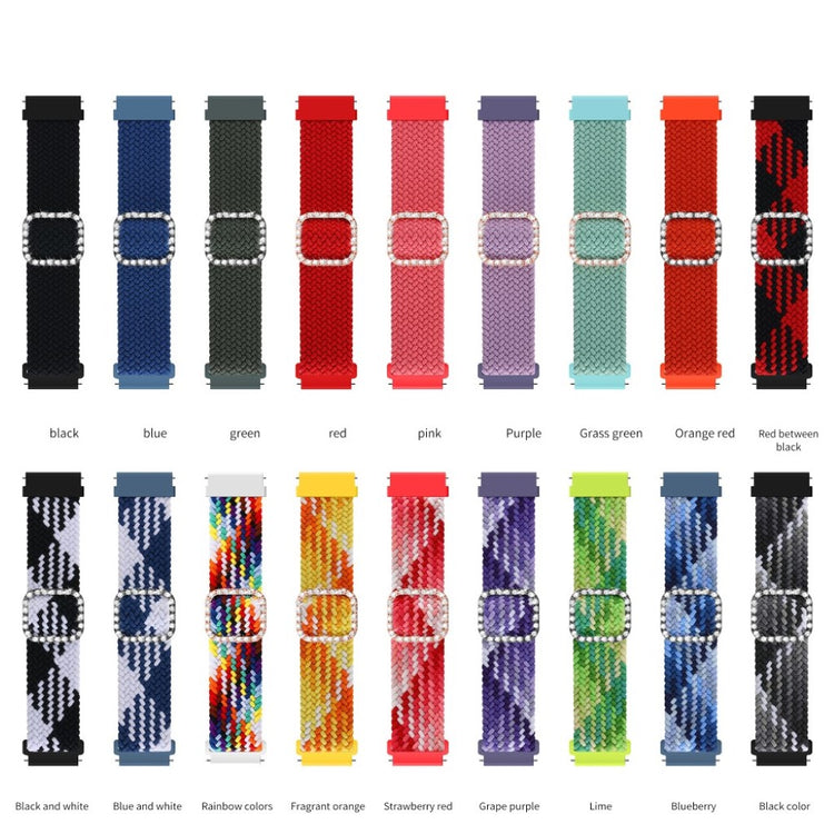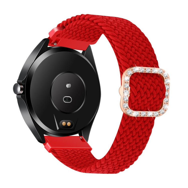 Oppgrader din smartklokke med vårt stilige og funksjonelle erstatningsrem! Denne fleksible remmen laget av premium flettet nylon gir både komfort og holdbarhet. Med sin delikate rhinestones spenne får du et elegant og moderne uttrykk, perfekt for enhver anledning. Den smarte bukledesignen gjør at du enkelt kan justere størrelsen for å oppnå optimal passform, noe som gjør dette til det ideelle valget hvis du har en gammel eller ødelagt rem. Enkel å installere og fjerne, og den passer til mange populære modeller som Samsung Galaxy Watch, Gear Sport og Huami Amazfit. Gjør ditt klokkeutstyr personlig med dette stilige tilbehøret!