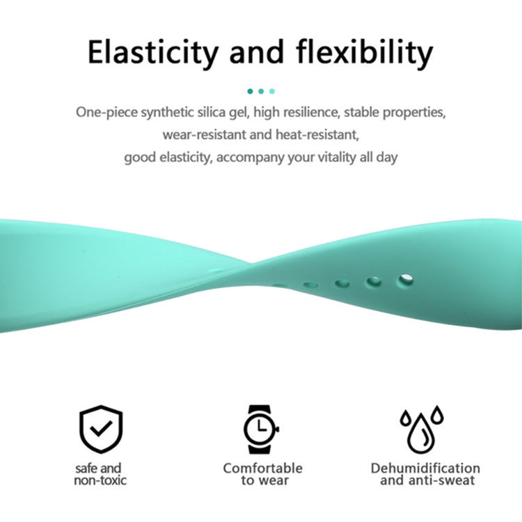 Laget av miljøvennlig silikonmateriale, er denne reimen vanntett og svettebestandig, og tåler slitasje. Med et design med dobbeltknappspenne er størrelsen enkel å justere for en myk og behagelig brukeropplevelse. Et ideelt erstatningsbånd for din gamle, ødelagte reim.