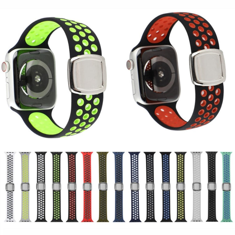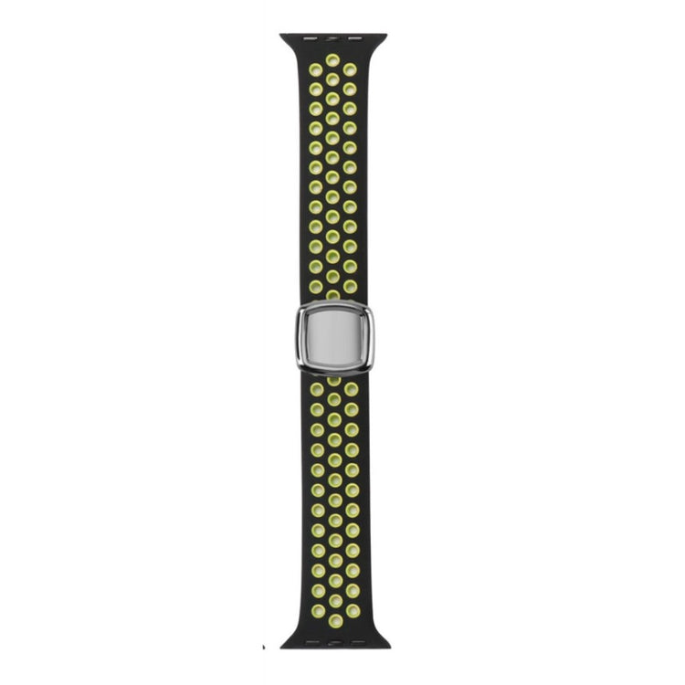 Oppgrader ditt smarthåndledd med et fargerikt silikonrem som er perfekt tilpasset for Apple Watch Series 7 / 8 41mm / SE / SE(2022) 40mm / Series 6 40mm / 5 40mm / 4 40mm / 3 38mm / 2 38mm / 1 38mm. Dette armbåndet er laget av slitesterkt silikon, som sikrer at det tåler daglig bruk. Den ergonomiske utformingen gjør det mykt og komfortabelt å ha på seg, noe som gjør det til et ideelt valg for både arbeid og fritid. Med flere alternativer kan du enkelt tilpasse stilen din og bytte ut det gamle eller ødelagte remmen. Riem er justerbart ved å klippe av den overflødige delen, noe som gjør det raskt og praktisk å få den perfekte passformen. Den smarte designen med flerhullsopplegg gjør det lett å justere størrelsen slik at remmen sitter godt på håndleddet, enten du har et håndledd som måler mellom 130mm og 220mm i omkrets. Dette armbåndet er den perfekte erstatningen for din gamle rem, og bringer både stil og funksjonalitet til smartwatch-opplevelsen din!