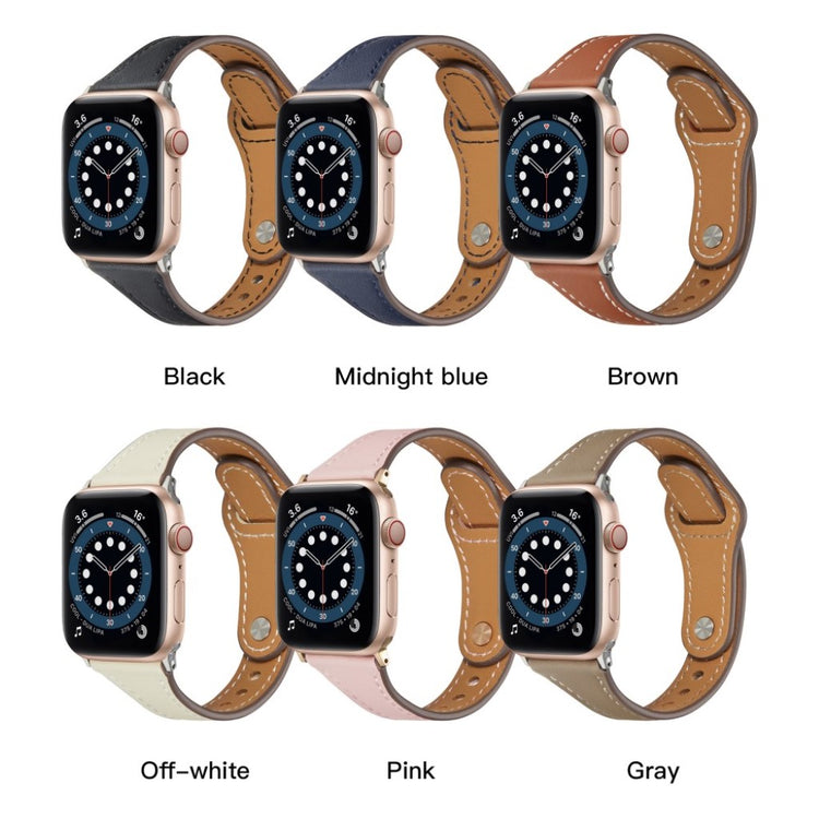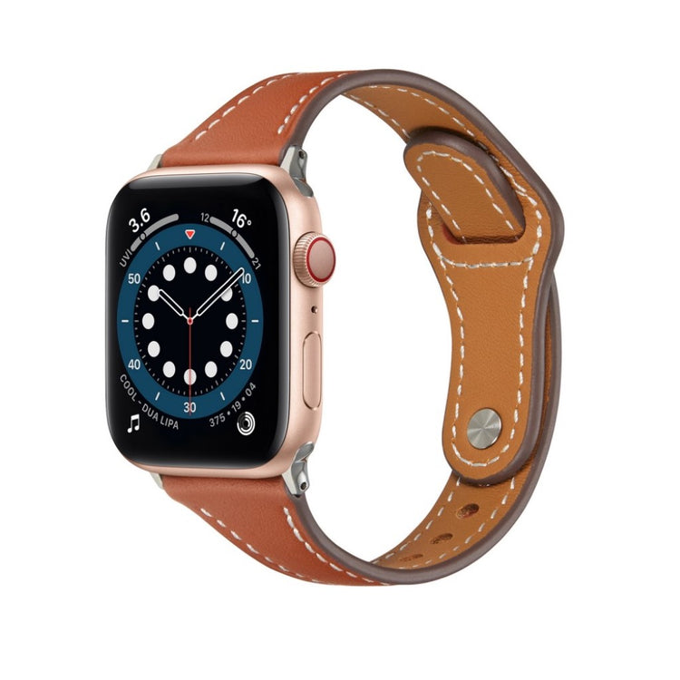 Gi din Apple Watch et nytt og stilig utseende med denne reimen i ekte lær med nagledesign. Reimen er komfortabel å bruke og passer perfekt til Apple Watch Series 7 / 8 41mm / Series 6 / 5 / 4 / SE / SE(2022) 40mm / Watch Series 3 / 2 / 1 38mm.