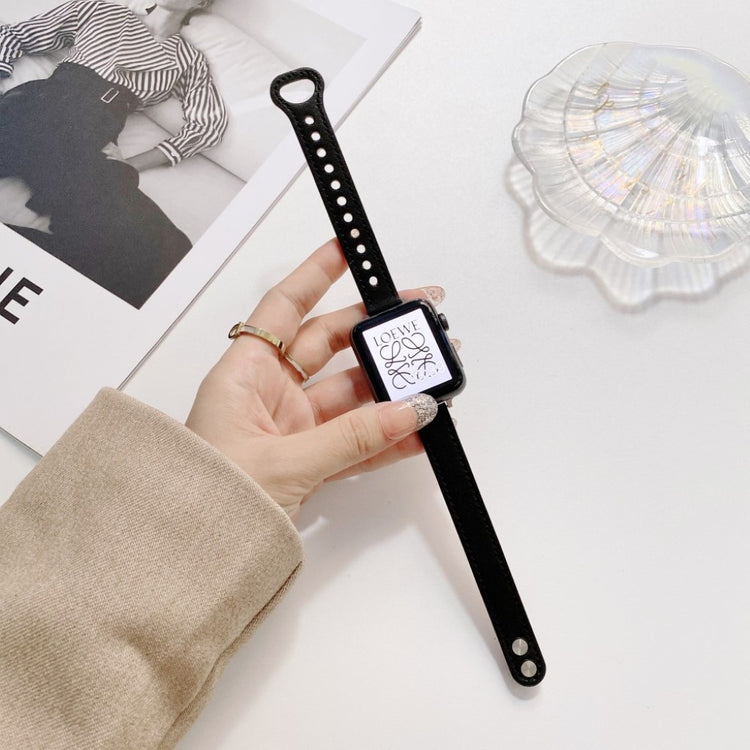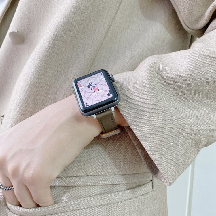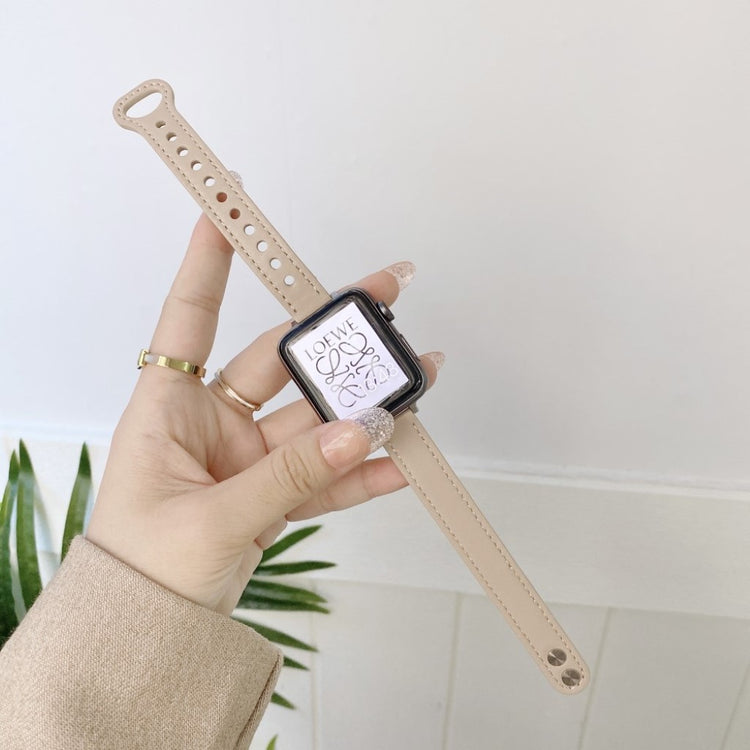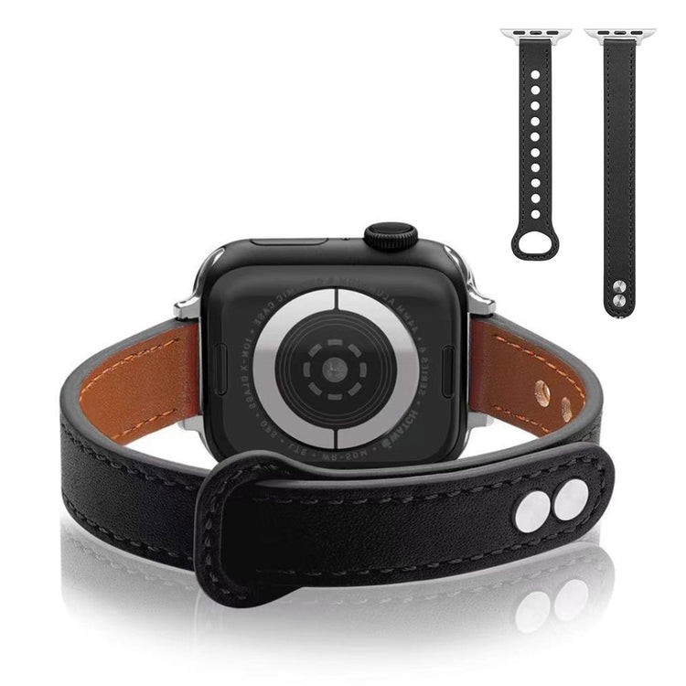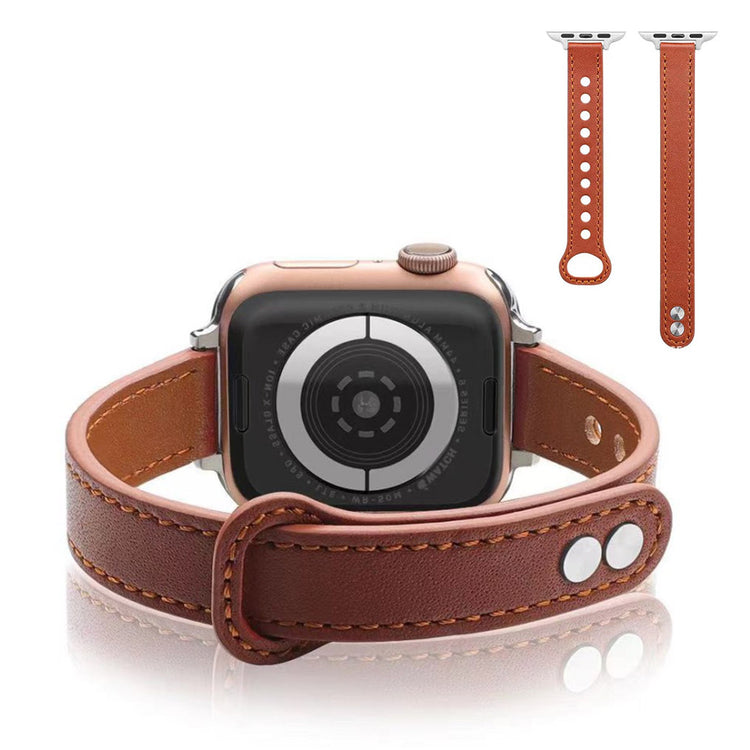 Denne stilige klokkereimen i PU-lær er perfekt for din Apple Watch. Med dobbel trykknapplukking sitter den sikkert på håndleddet, og hullene i reimen gjør det enkelt å justere størrelsen for optimal komfort. Et ideelt valg for å erstatte en gammel eller ødelagt reim.