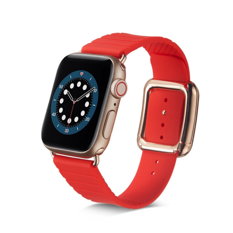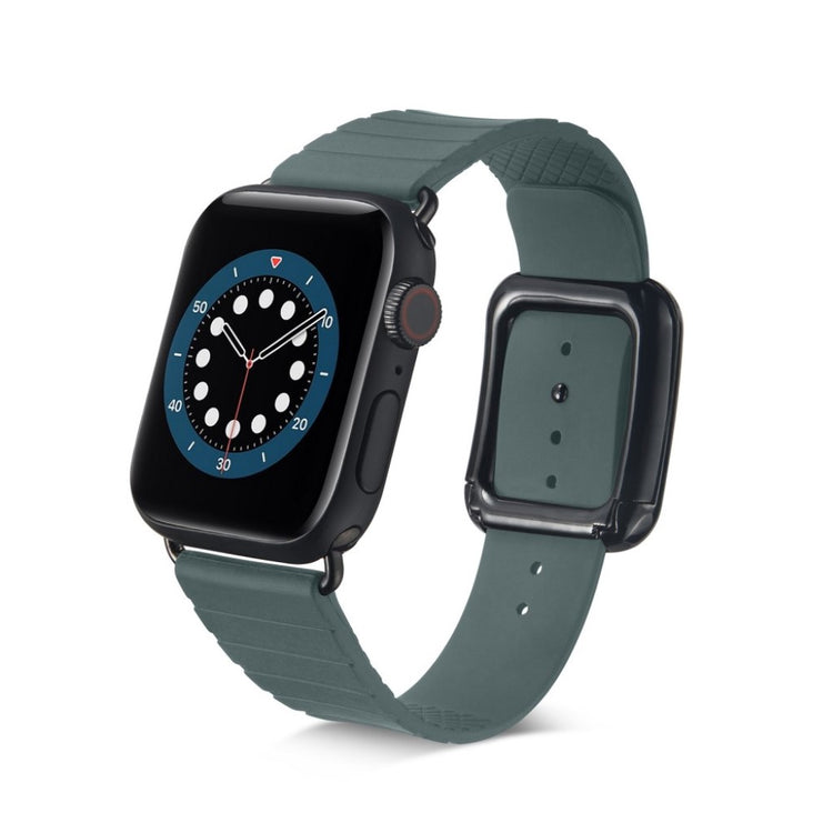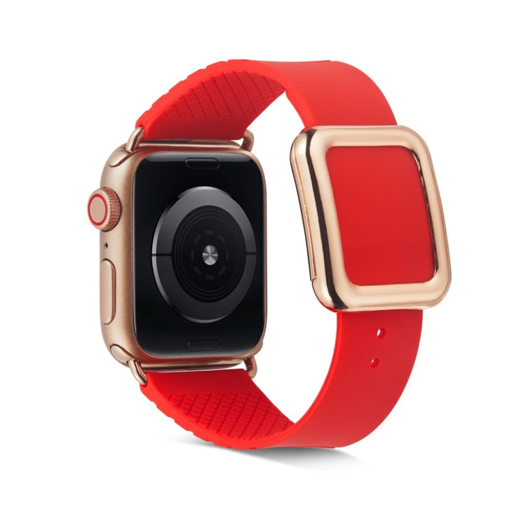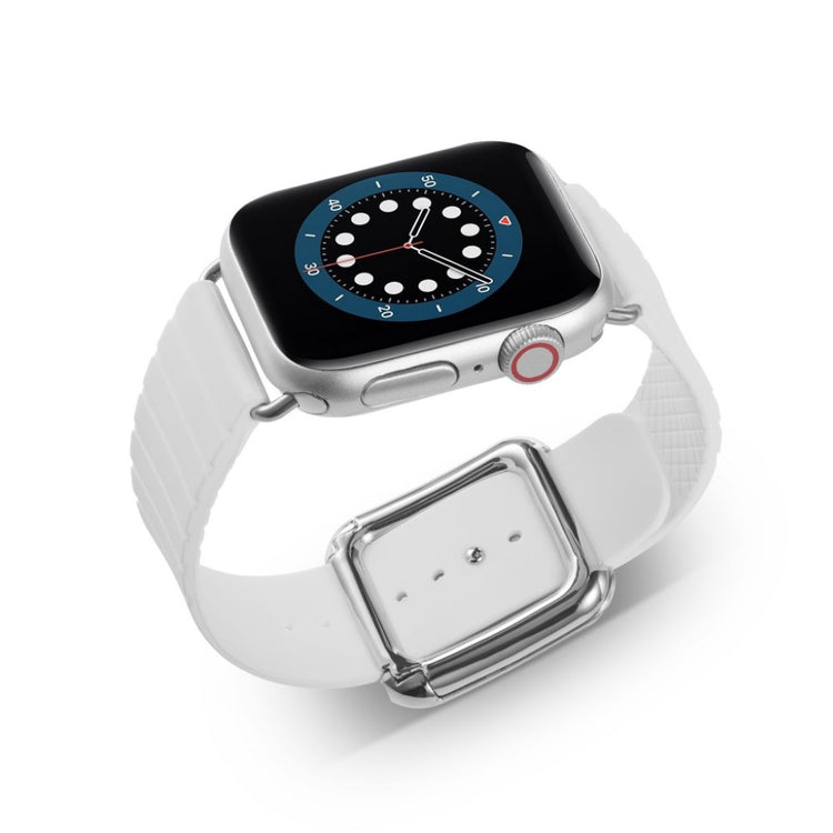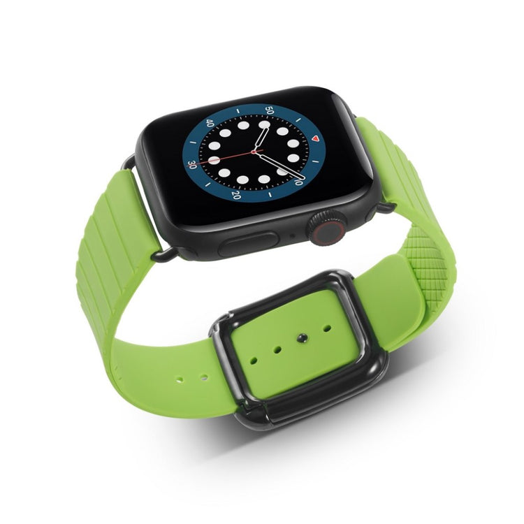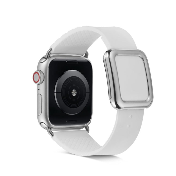 Oppgrader Apple Watch-en din med denne myke og moderne silikonreimen med firkantet spenne. Laget av miljøvennlig silikonmateriale, gir denne reimen en behagelig brukeropplevelse.
