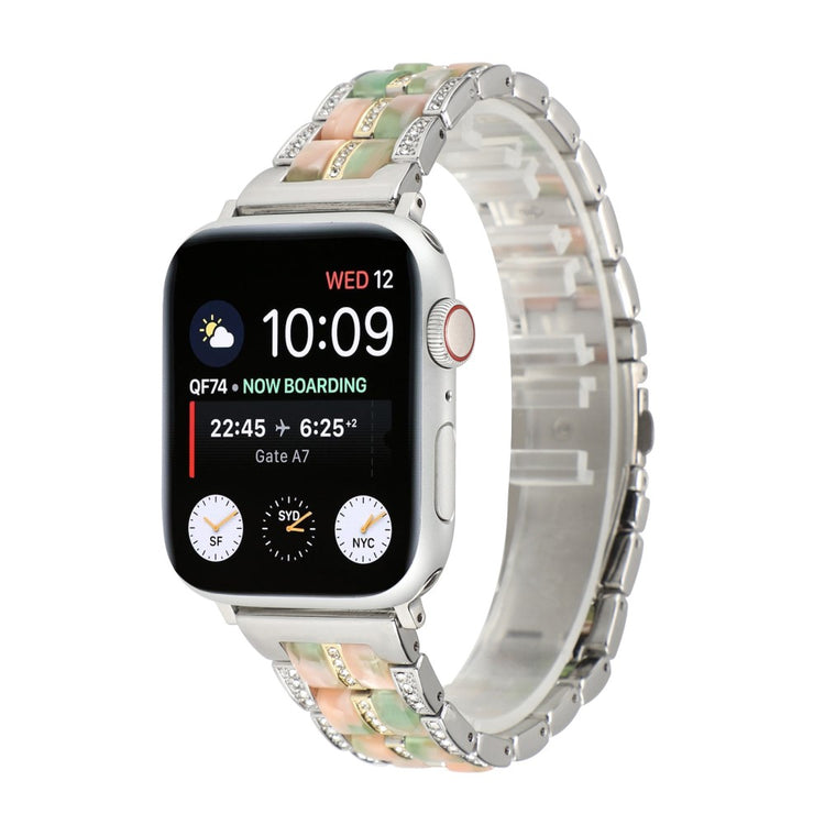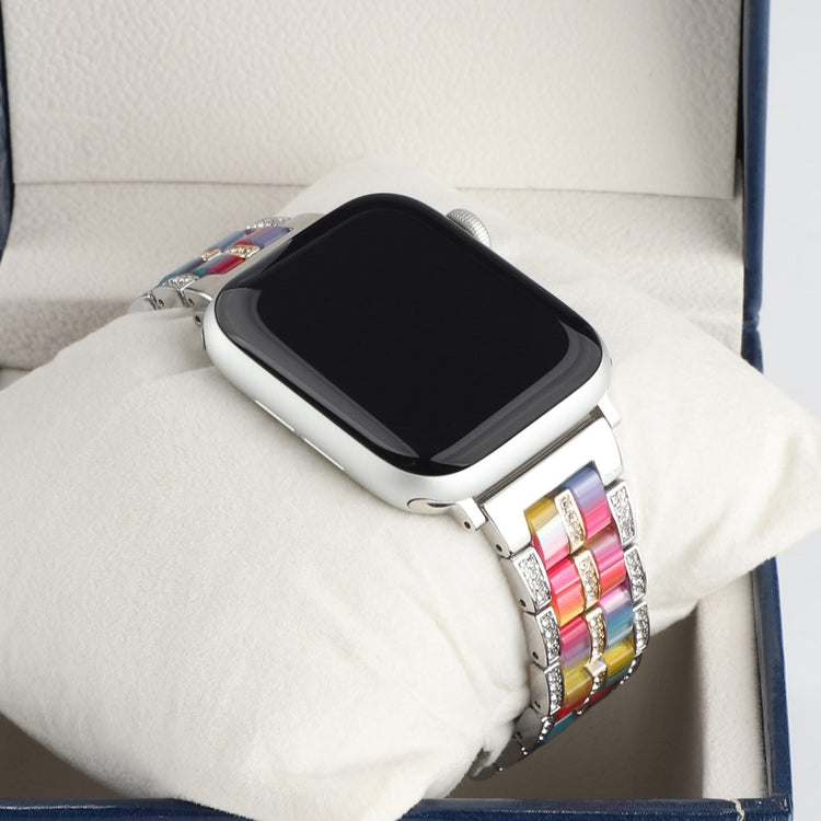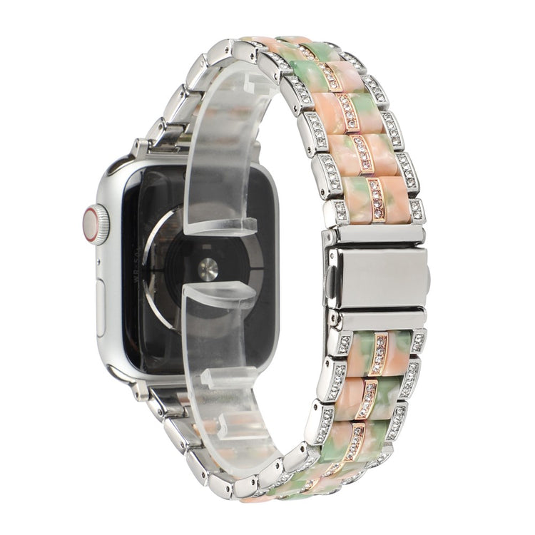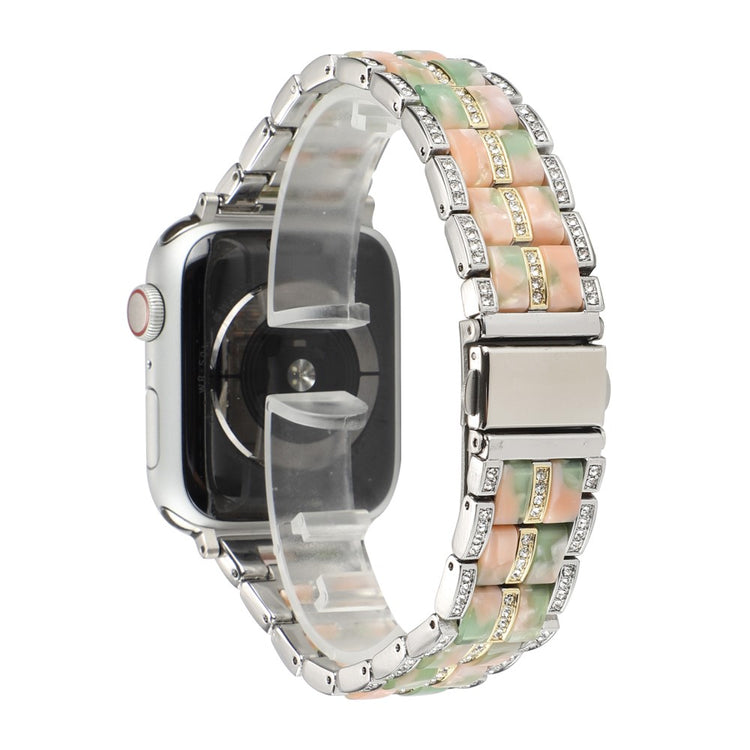Dette stilige klokkeremmen er laget av premium rustfritt stål kombinert med høykvalitets harpiks, noe som gir et luksuriøst preg. Den har en moderne design som passer både til arbeid og reise, samtidig som den er lett og behagelig. Med glitrende rhinestone dekor og et solid rammeverk, er denne remmen både enkel å installere og ta av, perfekt som gave til noen spesielle.