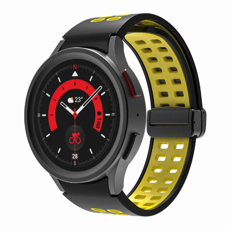 Oppgrader din smartklokke med dette stilige silikonremmen som passer til Samsung Galaxy Watch6 40mm og 44mm, Watch6 Classic 43mm og 47mm, Watch 5 40mm og 44mm, 5 Pro 45mm, samt Watch4 40mm og 44mm. Laget av høy-kvalitets silikon, gir denne remmen en komfortabel opplevelse hele dagen, og den er enkel å matche med din daglige stil. Materialet er hudvennlig og hypoallergent, så du trenger ikke å bekymre deg for irritasjoner. Den holdbare klipsen gjør det enkelt å ta på og av klokken, og med det smarte designet kan du enkelt justere størrelsen for å få en perfekt passform. Uansett om du er på jobb, har fritid eller andre hverdagsaktiviteter, er dette den ideelle erstatningen for din gamle eller defekte rem. Vær sikker på at du velger en rem som både ser bra ut og er funksjonell!