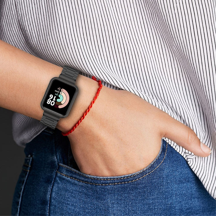 Dette er en kombinasjon av 3 perler i rustfritt stål klokkerem og beskyttelsesramme for Xiaomi Redmi Watch 2/Redmi Horloge 2 Generasjon, perfekt for en høykvalitets og personlig stil. Remmen er justerbar i størrelse og passer håndleddsomkrets fra 5,5 til 8,7 tommer, noe som gjør den ideell som erstatning for en gammel eller ødelagt rem. Den passer perfekt til arbeid, reise og hverdagen.