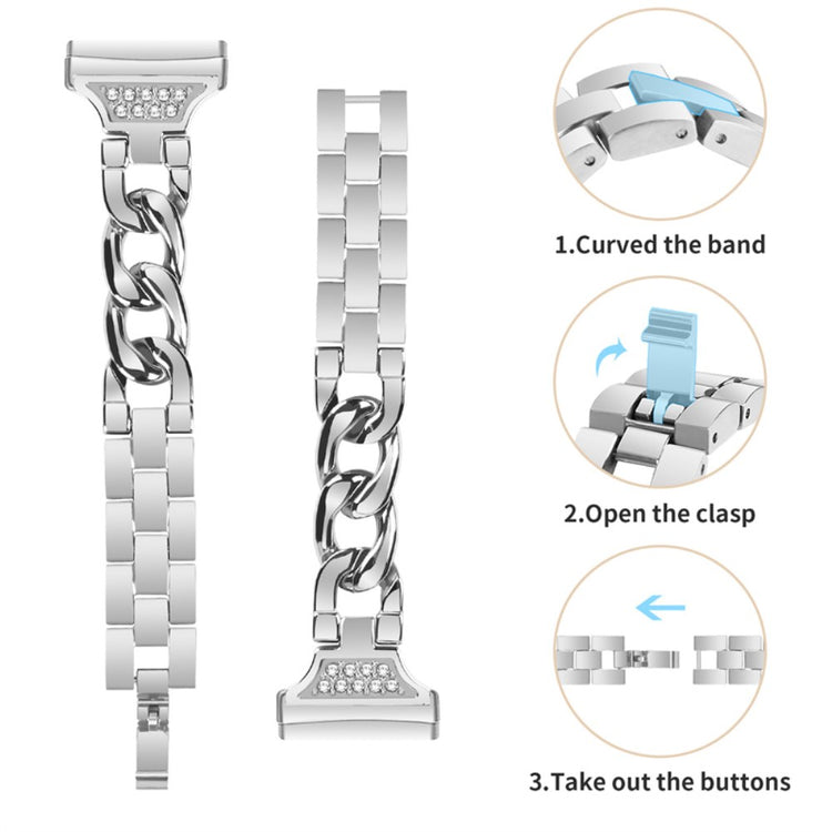 Flot Fitbit Sense 2 / Fitbit Versa 4 Metal og Rhinsten Rem - Sølv#serie_045